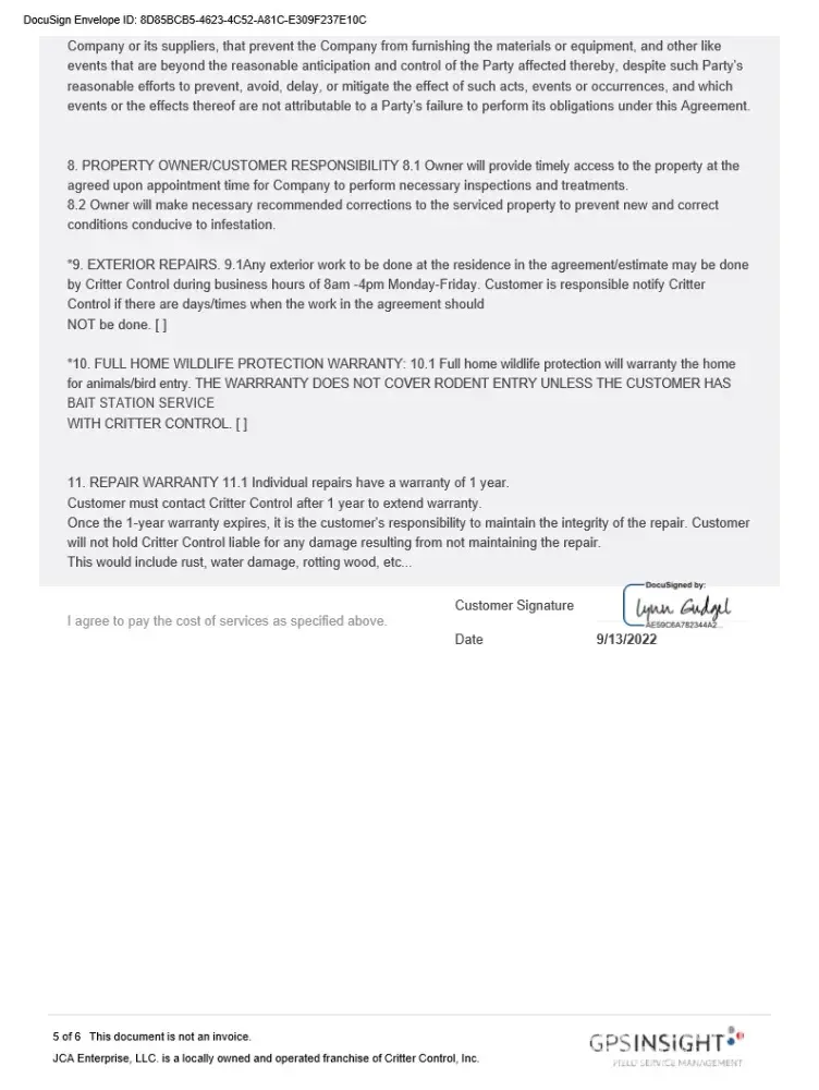 Critter Control of Olympia’s website has a Critter Control Guarantee that states: “Your satisfaction is always guaranteed. We provide reliable prevention from future intrusions. Resolving a nuisance wildlife issue calls for more than trapping and removing the critter. Our exclusion services offer immediate and long-term wildlife solutions.†The...
