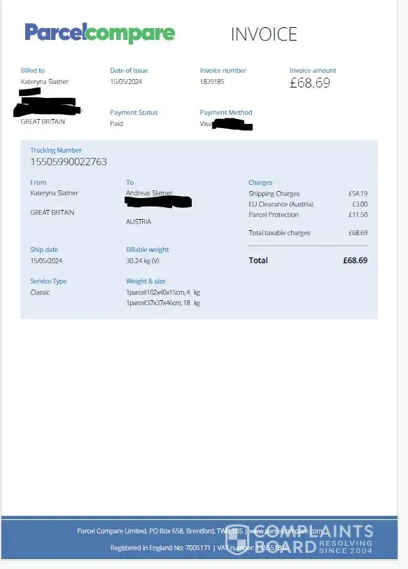 Read full complaintParcelCompare - Parcel damaged and disposed of, they refuse a refund