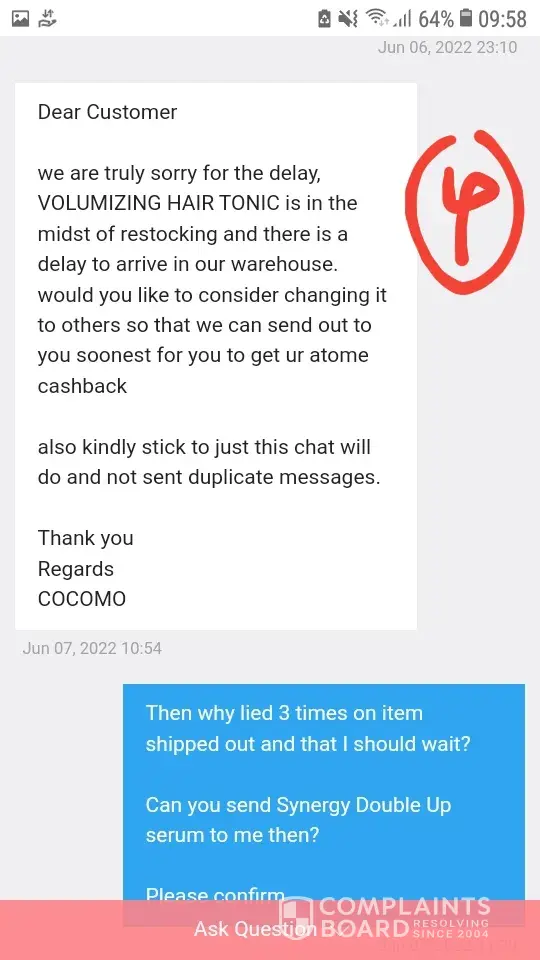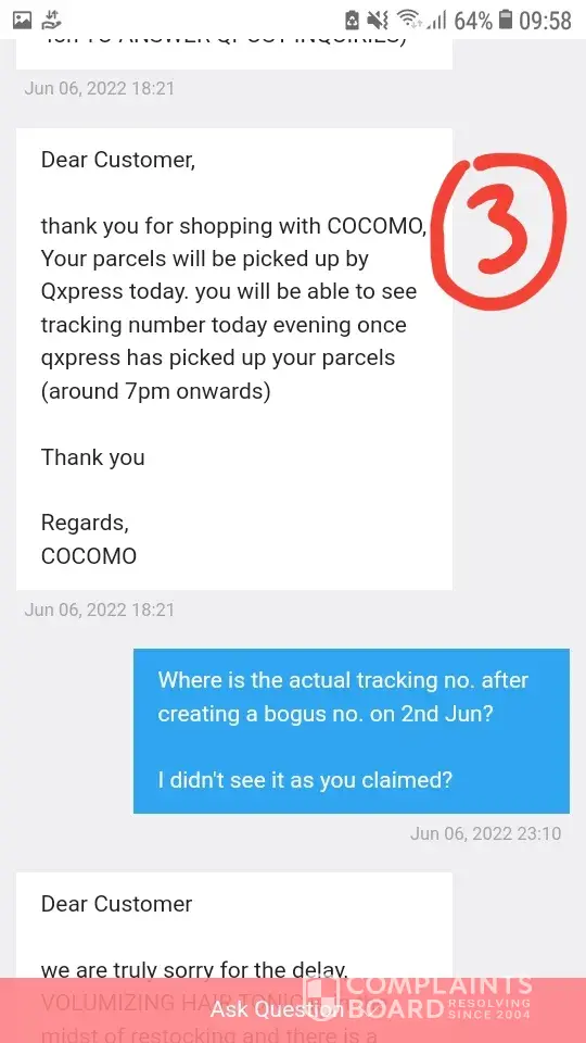 Read full complaintCocomo Official Store Singapore - Deceitful and very cunning seller