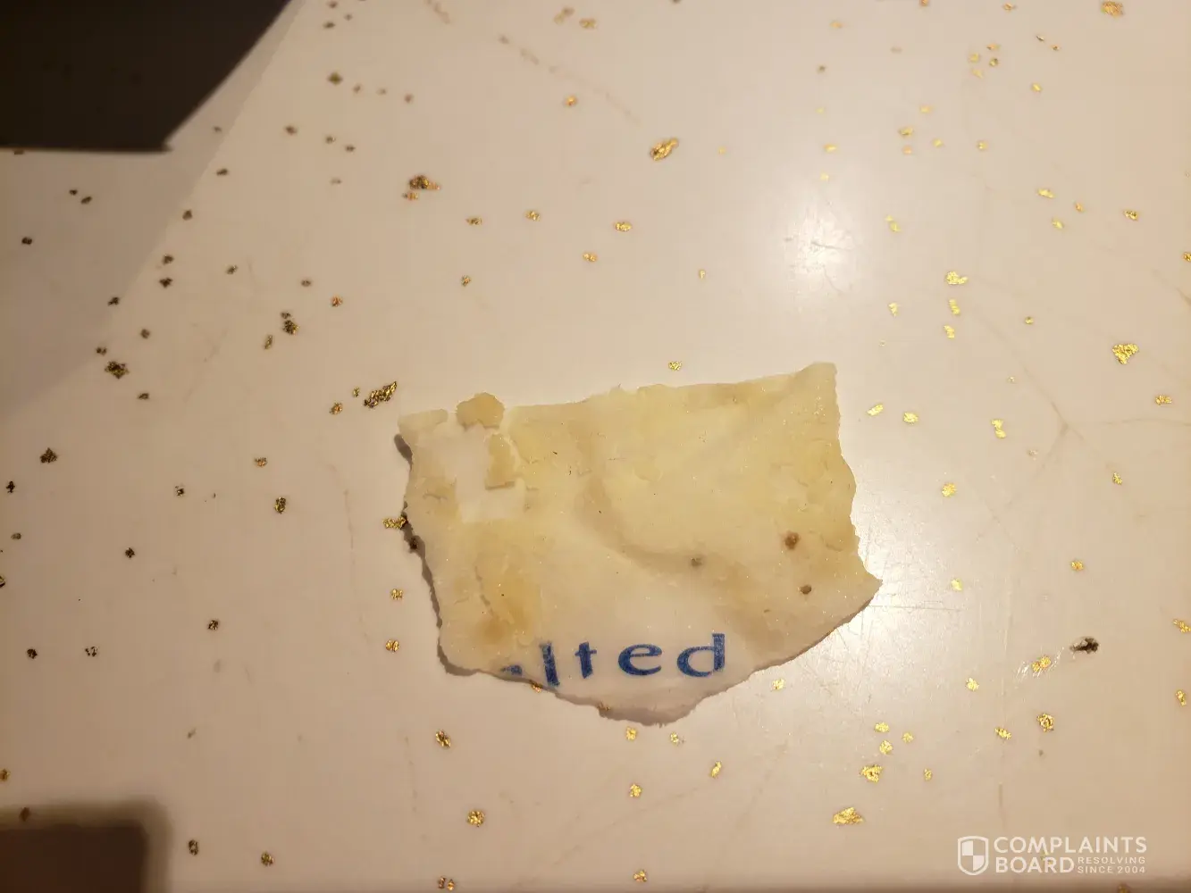 Christmas eve 2021, I was getting dinner set to heat up and found a piece wax like paper in it. Looks like it says salted or something as it is partial piece. I took a pic of dated container and piece of paper. Luckily I didn't swallow it. I love your products but this shouldn't happen. I would at least like a replacement or something to compensate for not...
