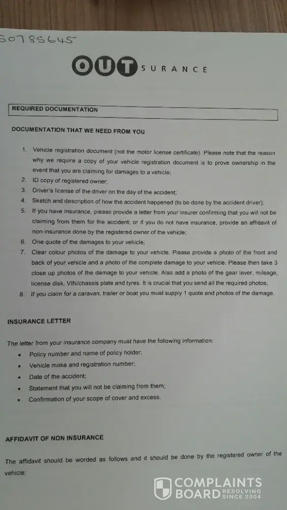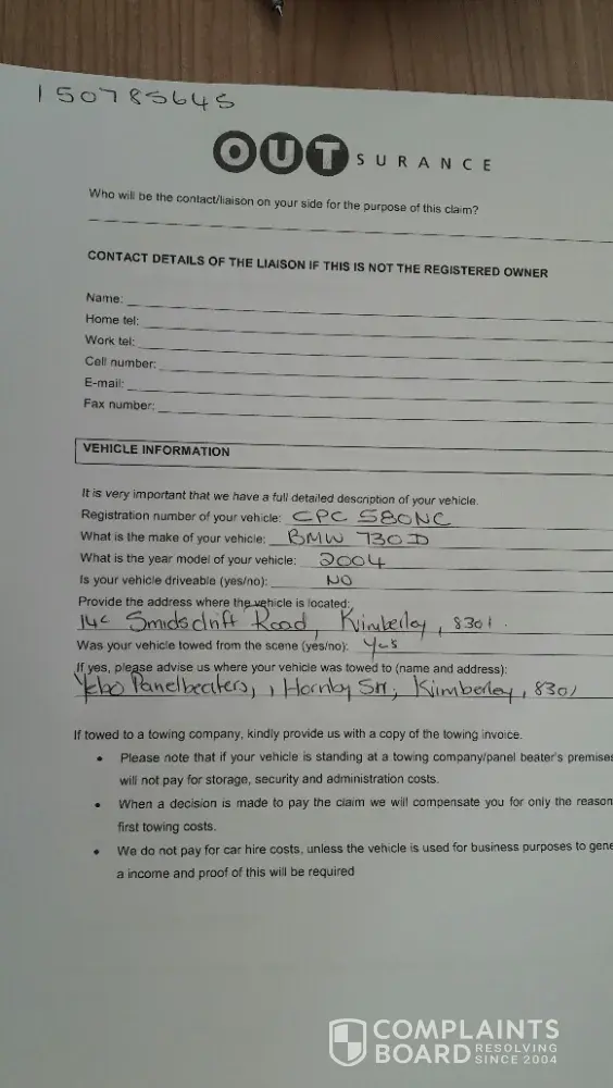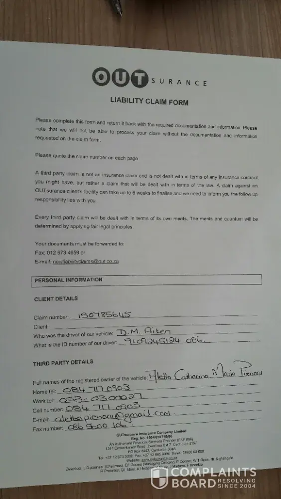I was involved in a accident with an outsurance client in August.I don't have insurance myself, and my little daughter of 3years old was in the vehicle with me at the time it was indeed the fault of the. Other driver and he was kind enough to admit that and apologies were given, my daughter was traumatised luckily not injured. I did everything that was expected of me in terms of the police and 3rd party process, the person who dealt with the claim then advised me via email that the matter is now been handled by a man named Salmon. No apologies nothing never getting back to me been promised will give me feedback back never came. I have lost my faith and respect for outsurance, how can they have people like this ruining their reputation it's almost the end of November and I still have a broken vehicle and no contact unless I phone and then get told lies. Pretorius, I then dealt with this person and he advised it will be 4-6 weeks before this will be resolved not to mention I got the cheapest quote for them. Then I hear nothing for 8 weeks I then emailed the guy Salmon Pretorius and heard nothing back, then I called him a day later and he said oh he can't find the claim documents can he send it then I need to do the process all over again which I did, he also said oh he can see the email I sent so why didn't he even reply to it? Then after all that he says to me I will submit it for finalisation then will get back to you by 5 he never