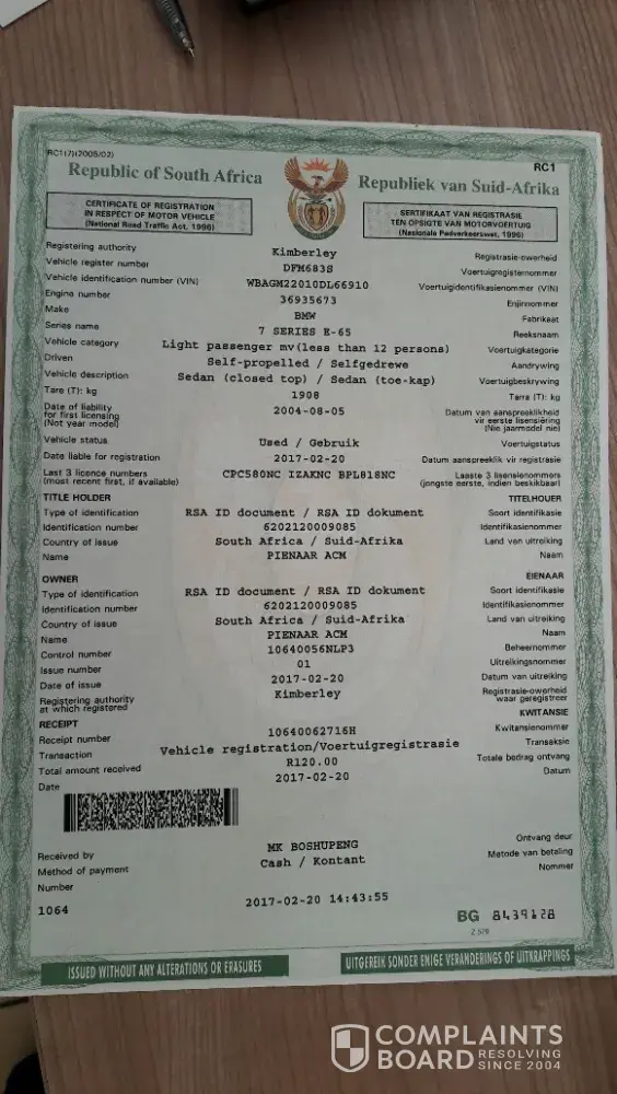 Thabiso Seleke and the afrikaans woman who (on my request) phoned me to tell me that my claim was rejected as I am afrikaans, made it clear to me that I can receive on help whatsoever, as they have decided to believe their client. I do not have any insurance on my car and would asked for your help in this matter.