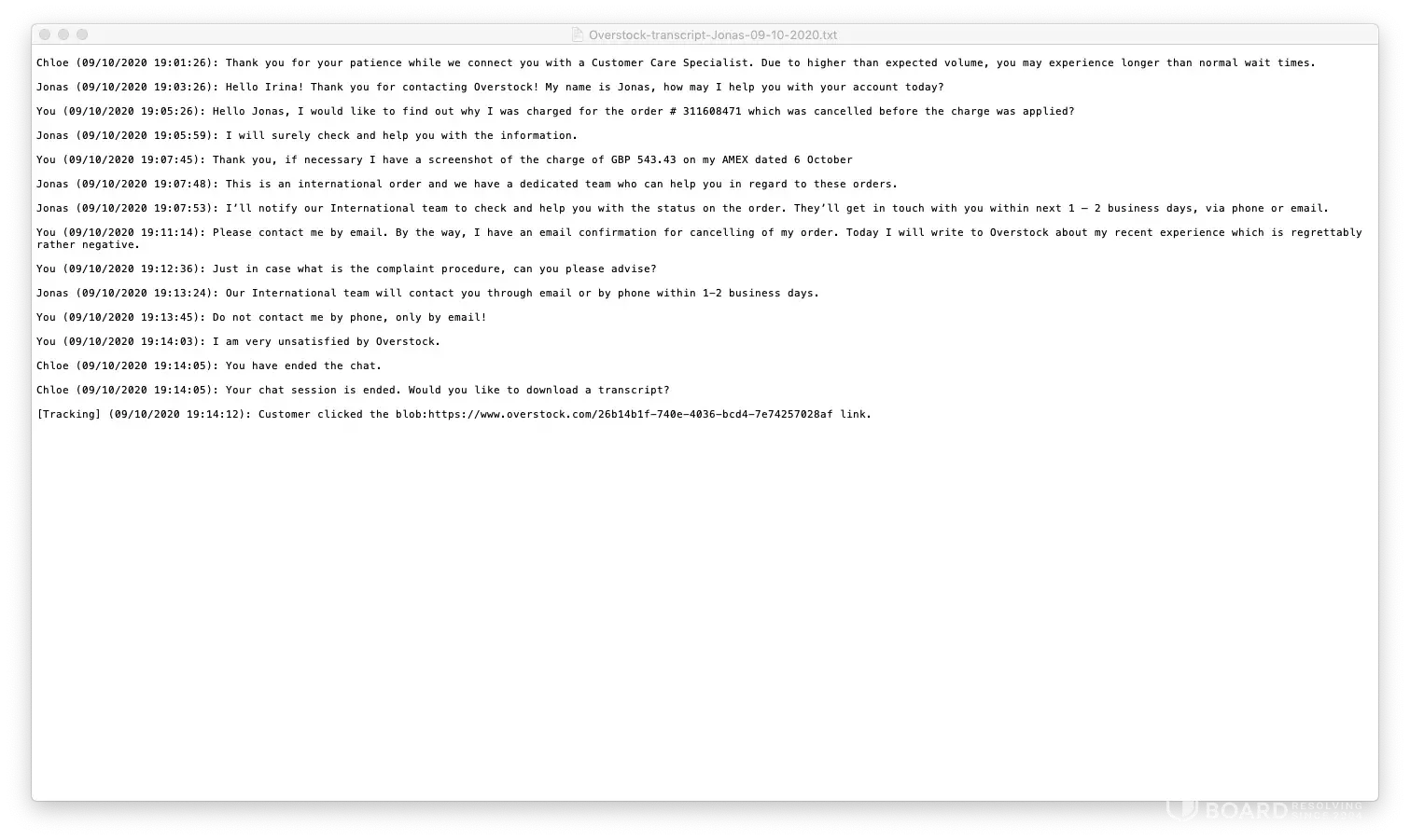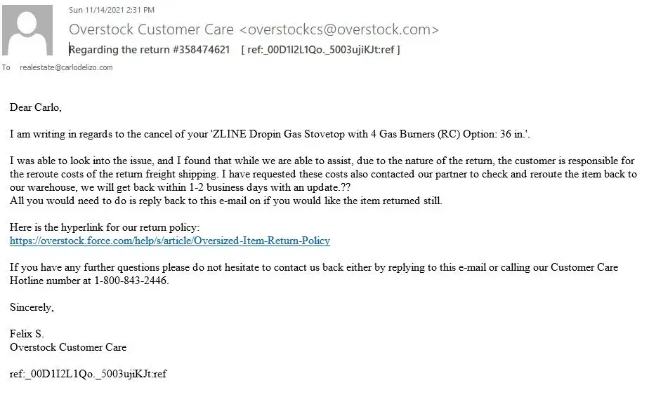 Overstock lack of response & professional service
