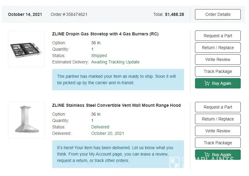 I orderd a 36"ZLine drop in Gas Stovetop along with a ZLine Vent Hood in October 14th, 2021. I received the Vent Hood 8 days later. BUT Gas Stovetop is nowhere to be found. I've reached out to customer service thru their chat and via phone multiple times but the only thing that they can tell me is that it has already shipped. YET, whenever I track the order, the shipment status has not been updated since Nov. 3rd, 2021. Bottomline, they do not have my order nor they know where it is... They had already charged my credit card.