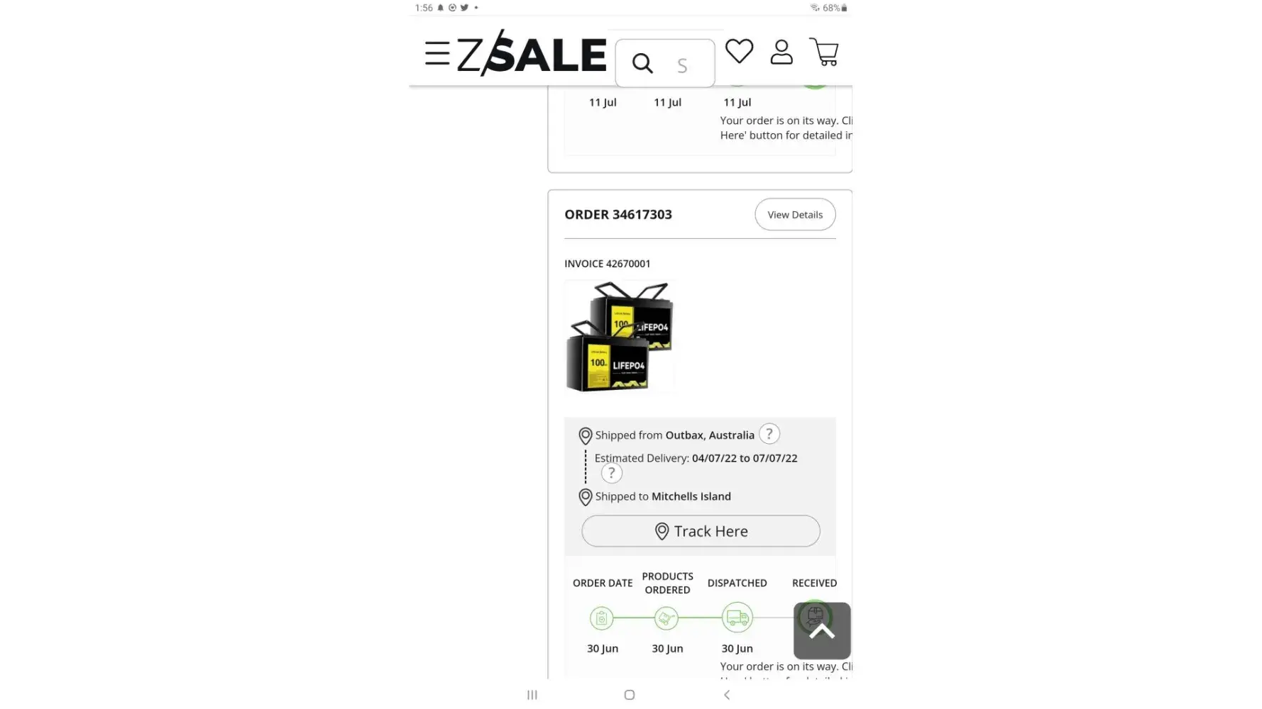 And screen shot of my order.