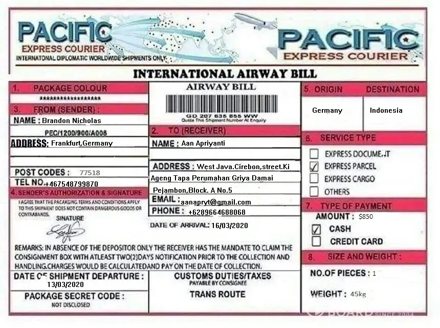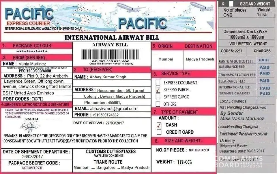 CB Online Scams Review of Pacific Express Courier And Cargo Services
