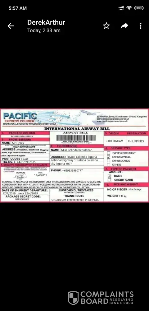 Pacific Express Courier And Cargo Services review: Fraudulent company ( 12 comments)