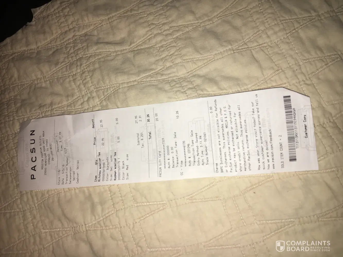 PACSUN I am complaining about this new shirt I bought on black friday and I found a whole in the sleeve.