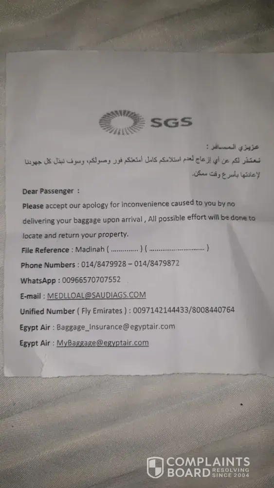 Right after the incident my father filed a complaint at Madina airport when no satisfactory reason was given why did it happen and the complaint form was given to him and he was told that it has been registered and will be sorted earliest possible but unfortunately nobody responded to it even after 4 days due to which he had to suffer a lot as all his belongings including medicines were in that baggage.