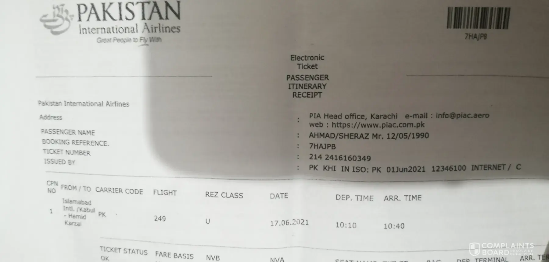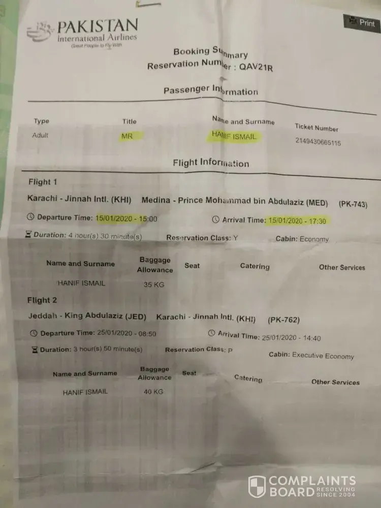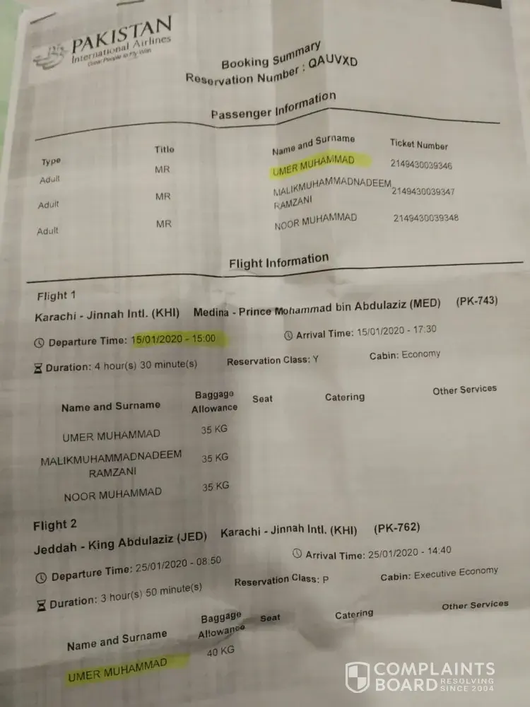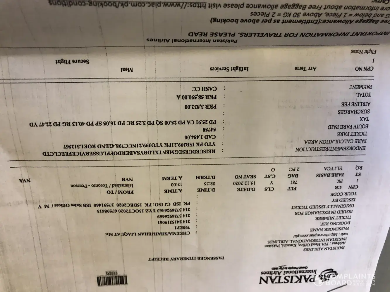 Pakistan International Airlines [PIA] Complaints Page 3 of 8