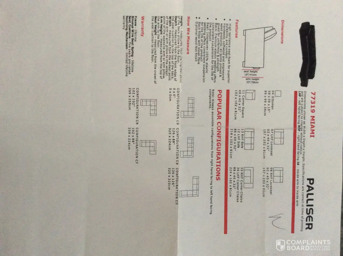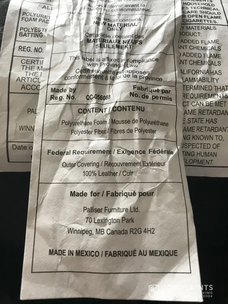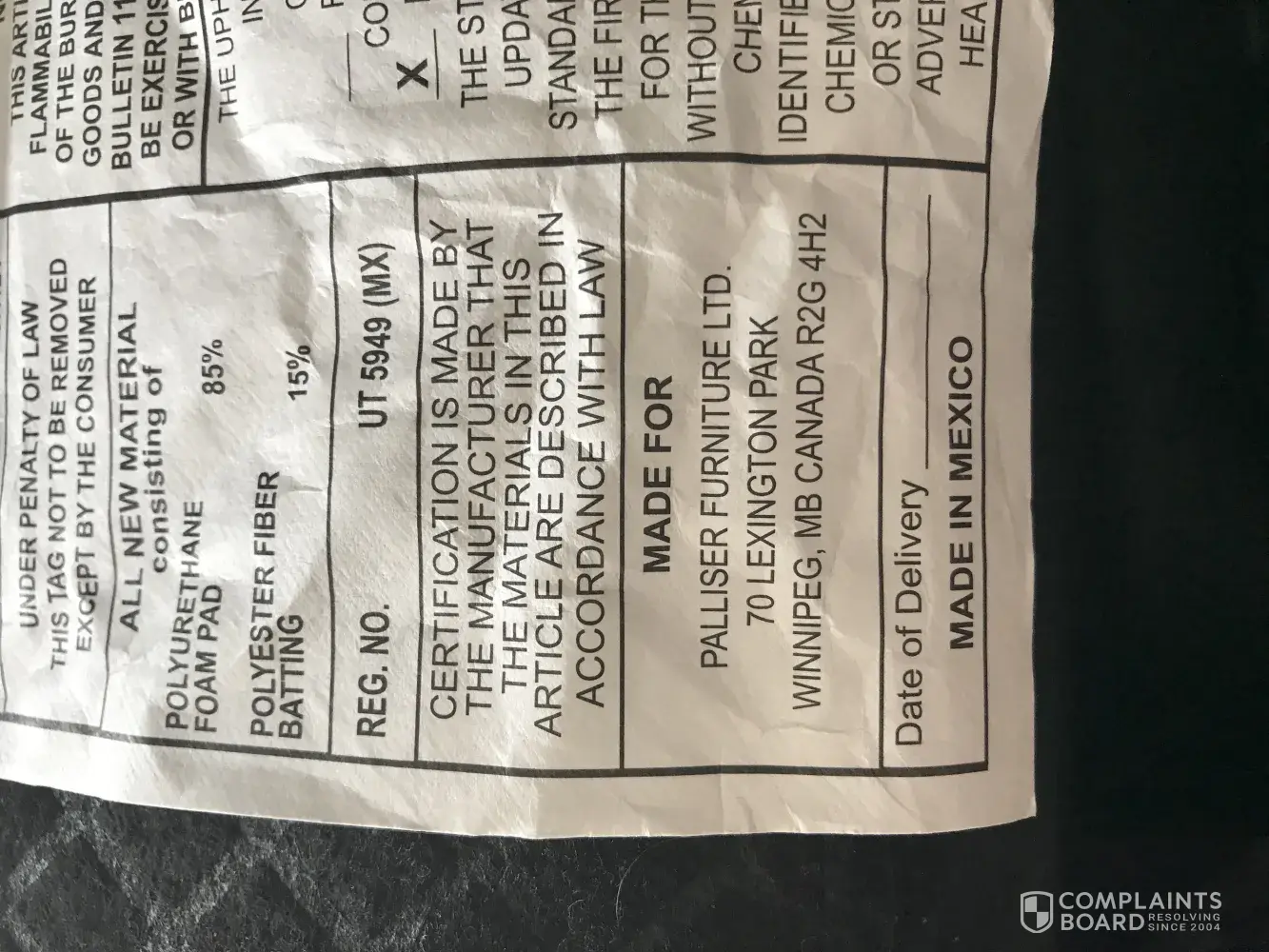 Palliser Furniture Upholstery complaints: history and resolution overview