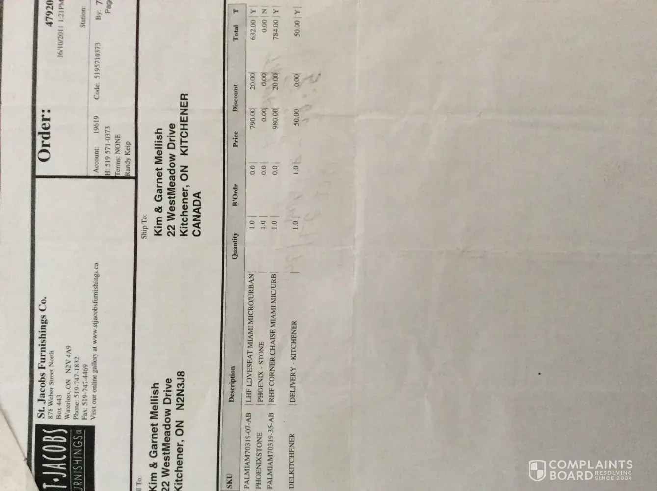 In the 3 months since we complained to Jordan's we haven't heard a word from Palliser.