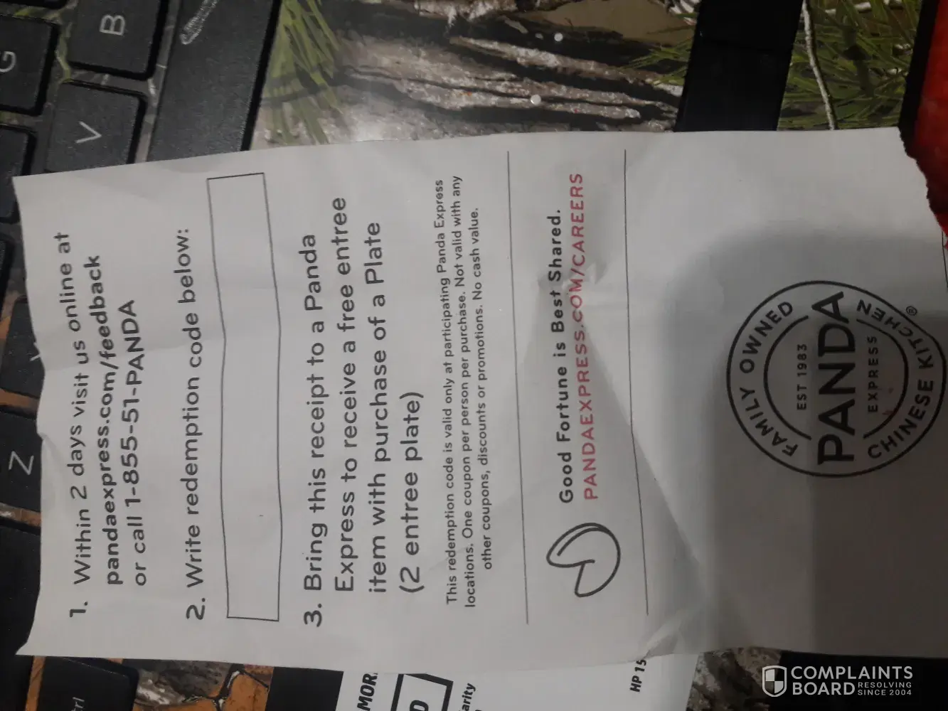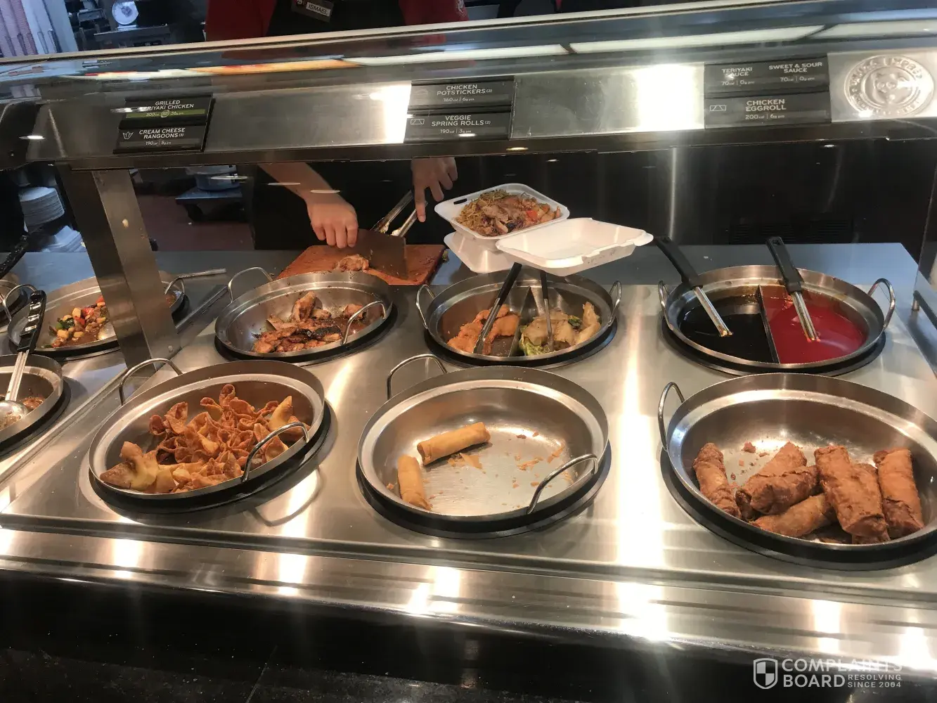 2) The counter person who prepared our food and checked us out was very loud, to the point that fixing that should be a Panda objective. I already had in hand the "free" third entree. At first she demanded I pay for it extra. As I protested that it was supposed to be free, she took it and threw in the garbage right in front of everyone. It was embarassing. With fear of further embarrasment, I had to remind her that I was entitled to a Fortune Cookie.