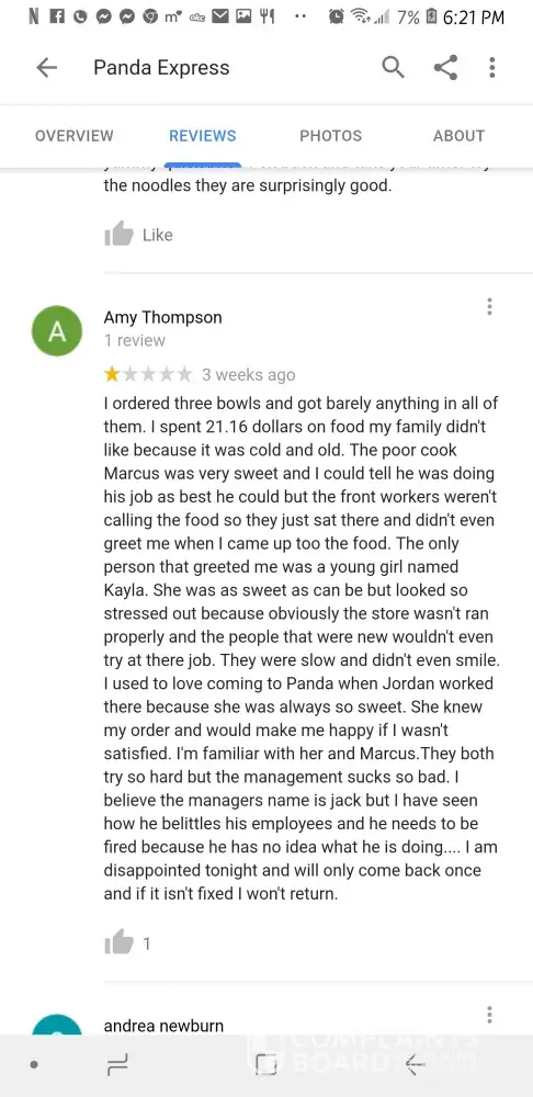 rude employees panda express store 2389 panama city beach
