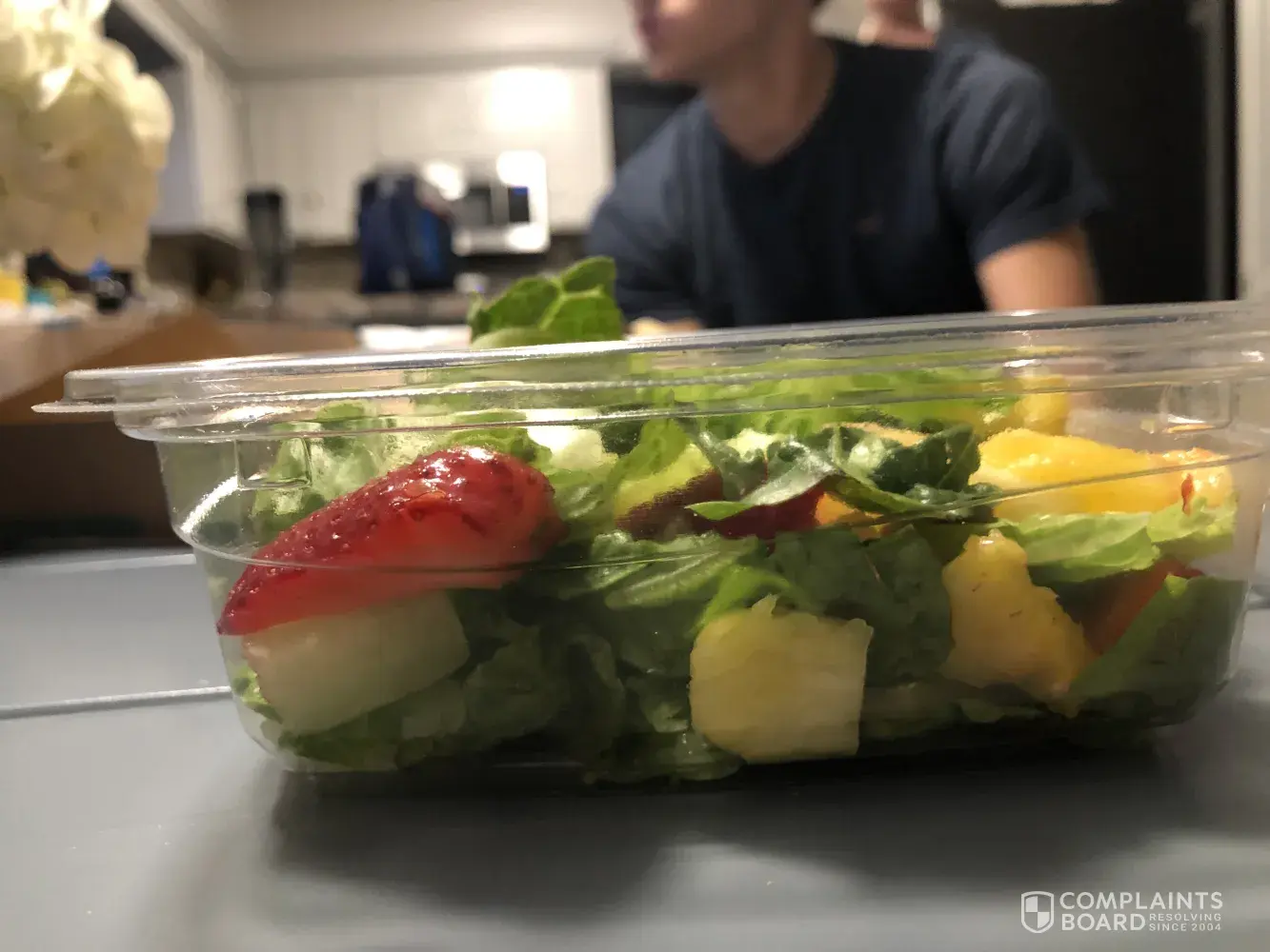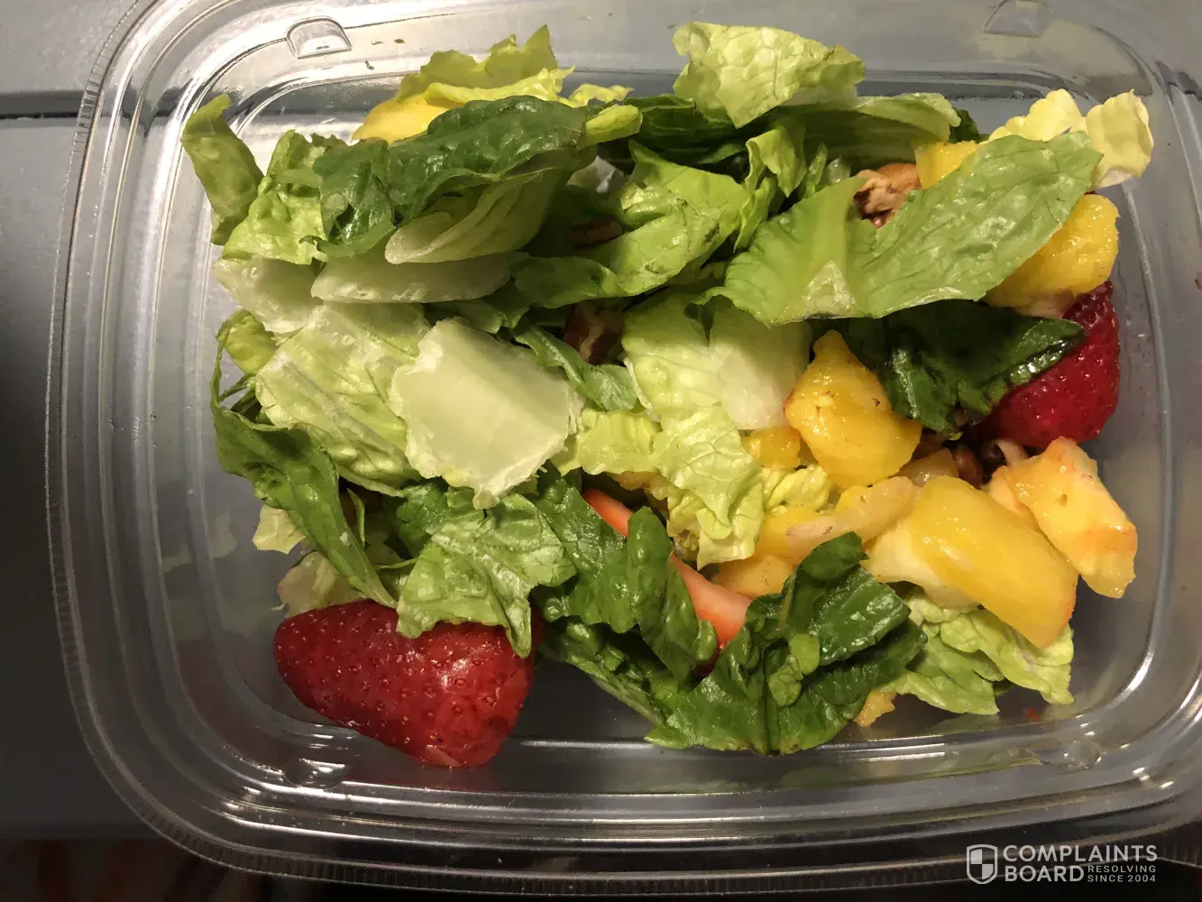 I ordered this salad, without chicken, oranges or blueberries, like a always do, due to allergies and food restrictions. But this time I barely got anything. Normally they compensate for the items I do not want in my salad, but it looks like they barely put anything in it at all. Not worth my money. I didn't notice until I got home and took it out of the bag but I'm very disappointed.