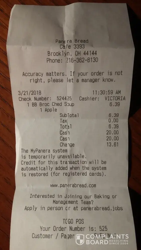 We were so disappointed because whenever we travel, we always look for a Panera Bread when we are ready to eat because we have always had excellent food and excellent service in the past.