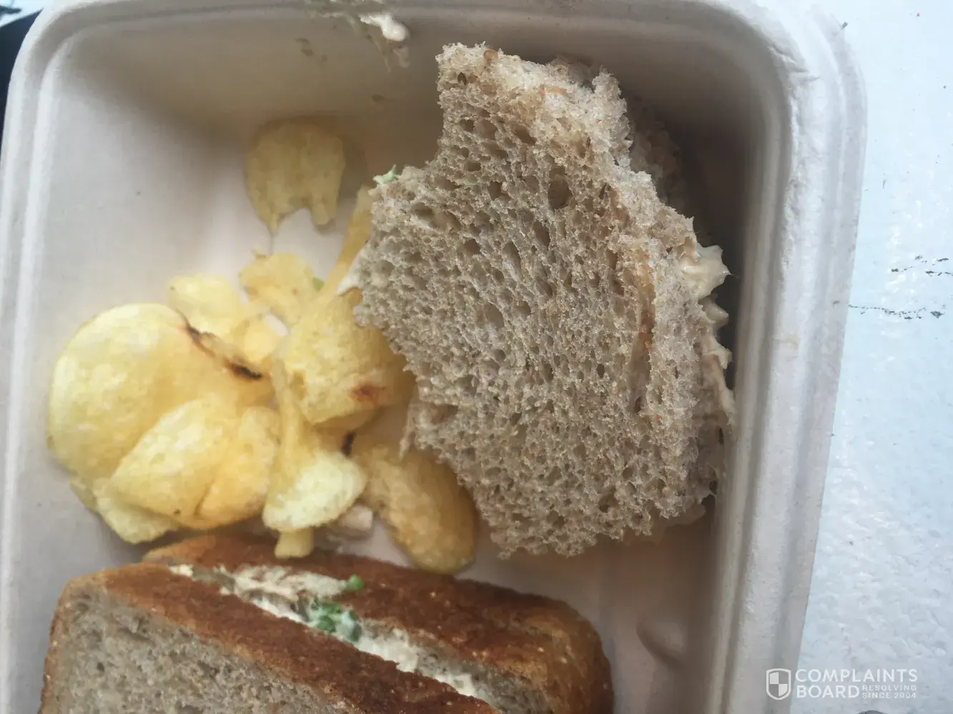 Stopping on the Ohio Turnpike at the Great Lakes Service Plaza I ordered 1/2 of a tuna salad sandwich on whole wheat. When we left and I started to unwrap my sandwich to eat along the way I found that they gave me a heel for one of the pieces of bread. It was bad enough to pay $5.50 for only a half of a sandwich but then to have less than quality bread. I used to enjoy this sandwich but will be very hesitant to order again.