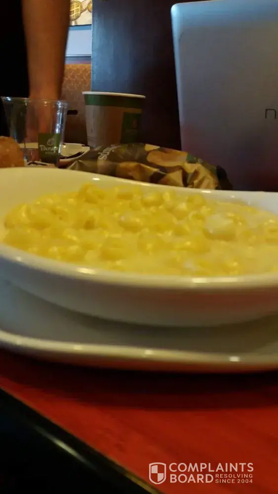 I'm 16 but I earn my money. I don't earn much but at least I have some, right? So I go to panera early this morning and I order a small mac n cheese (only two sizes a half and a full or if you prefer a small and a large) with a french baguette. I have eaten here many times before and have been satisfied but when my dad brought me the plate and sat down...