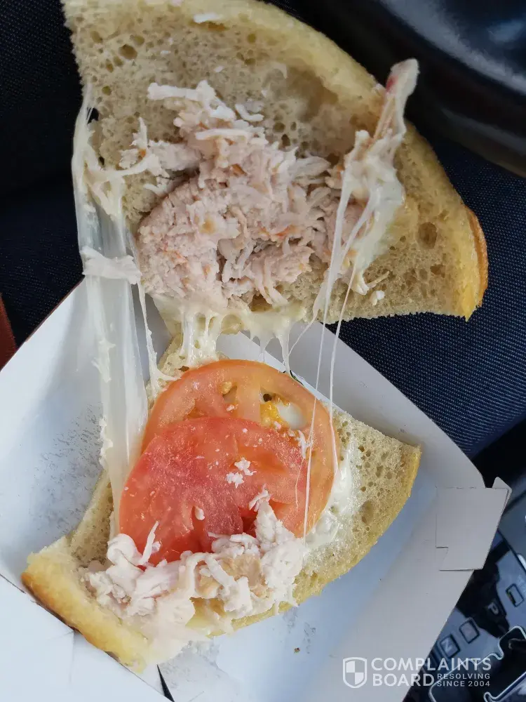 I don't usually complain about food service but the quality of the sandwich I purchased at Panera in Macon Georgia on Thursday April 27 2017 was awful