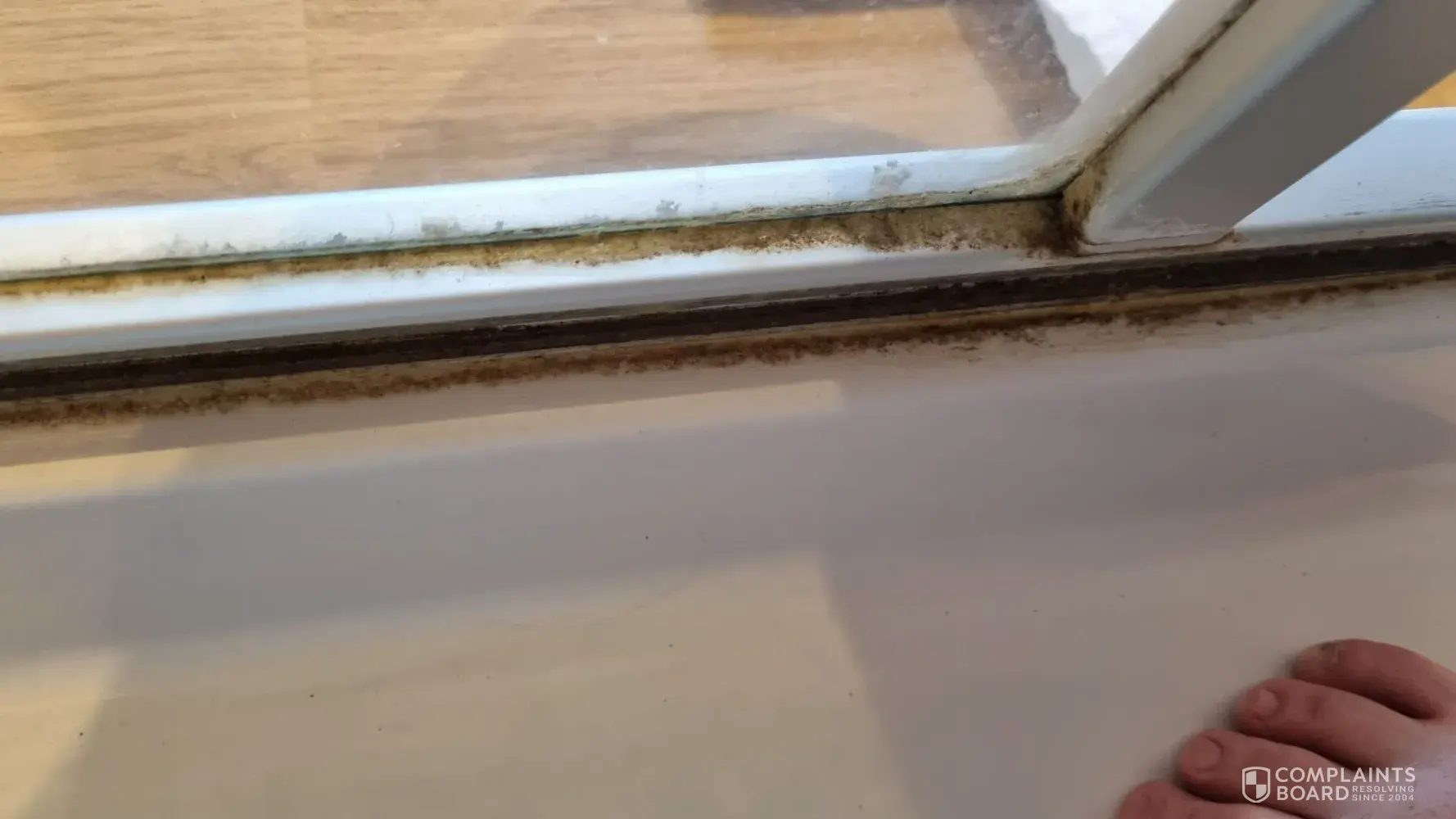 There was dead flies on the carpet and window seal, bits missing from the corners of the window frames and what looked like someone’s fingernail under the tv unit. (Photo 4&5)