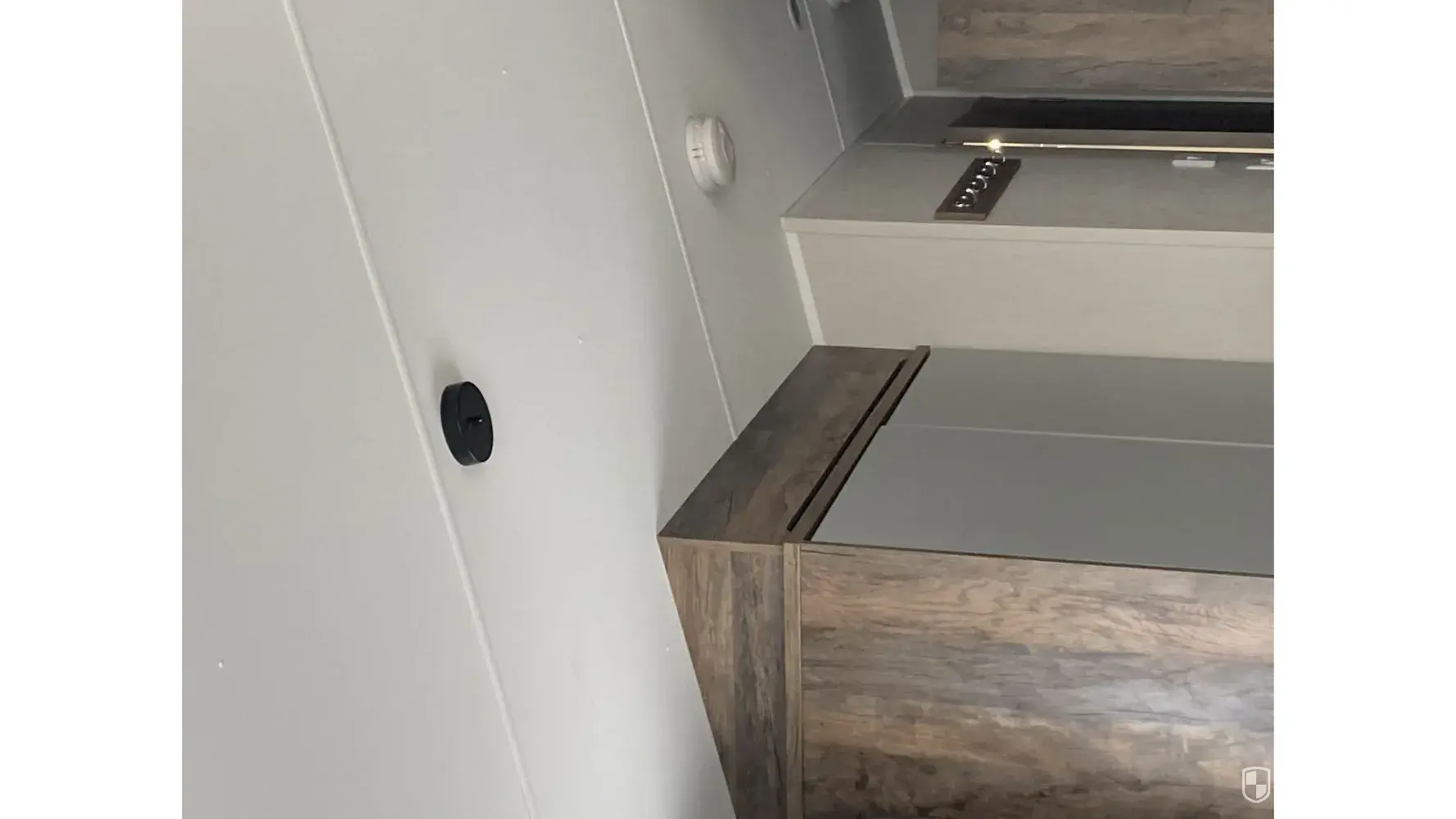 The fridge would not close properly, you had to make sure the cupboard door on it is pushed closed with force as the door seems to have dropped. (Video 1)