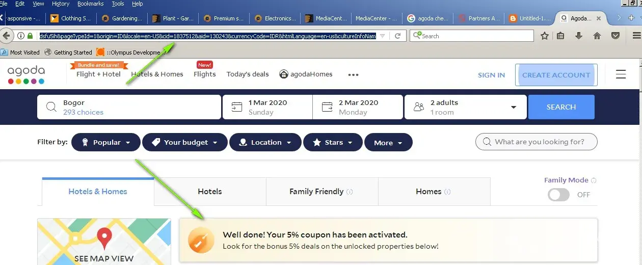 Here's another test I tried. Opened Agoda via http://www.agoda.com?cid=xxxxxxxxxx my affiliate ID
