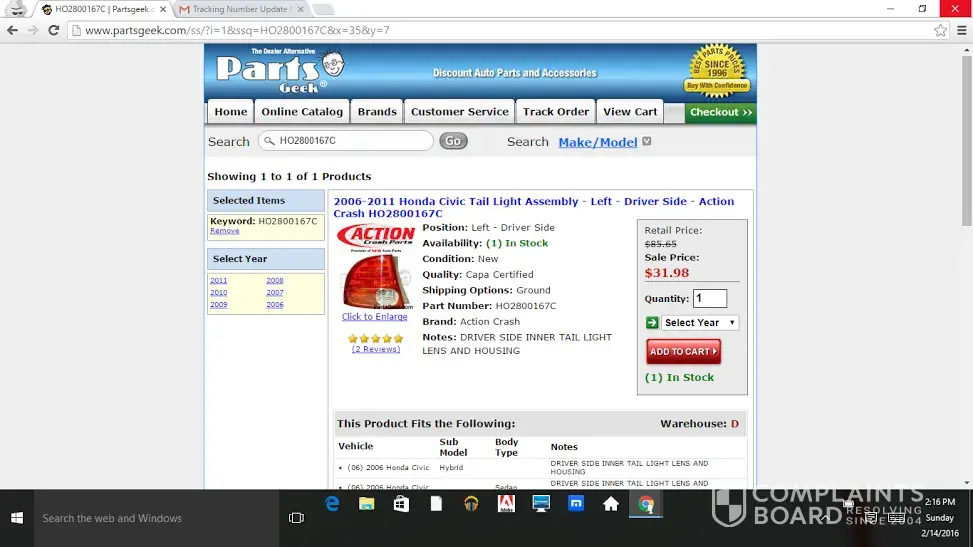 I am writing to prevent other people from doing business with PartsGeek, please support other businesses. This was a waste of time and money.