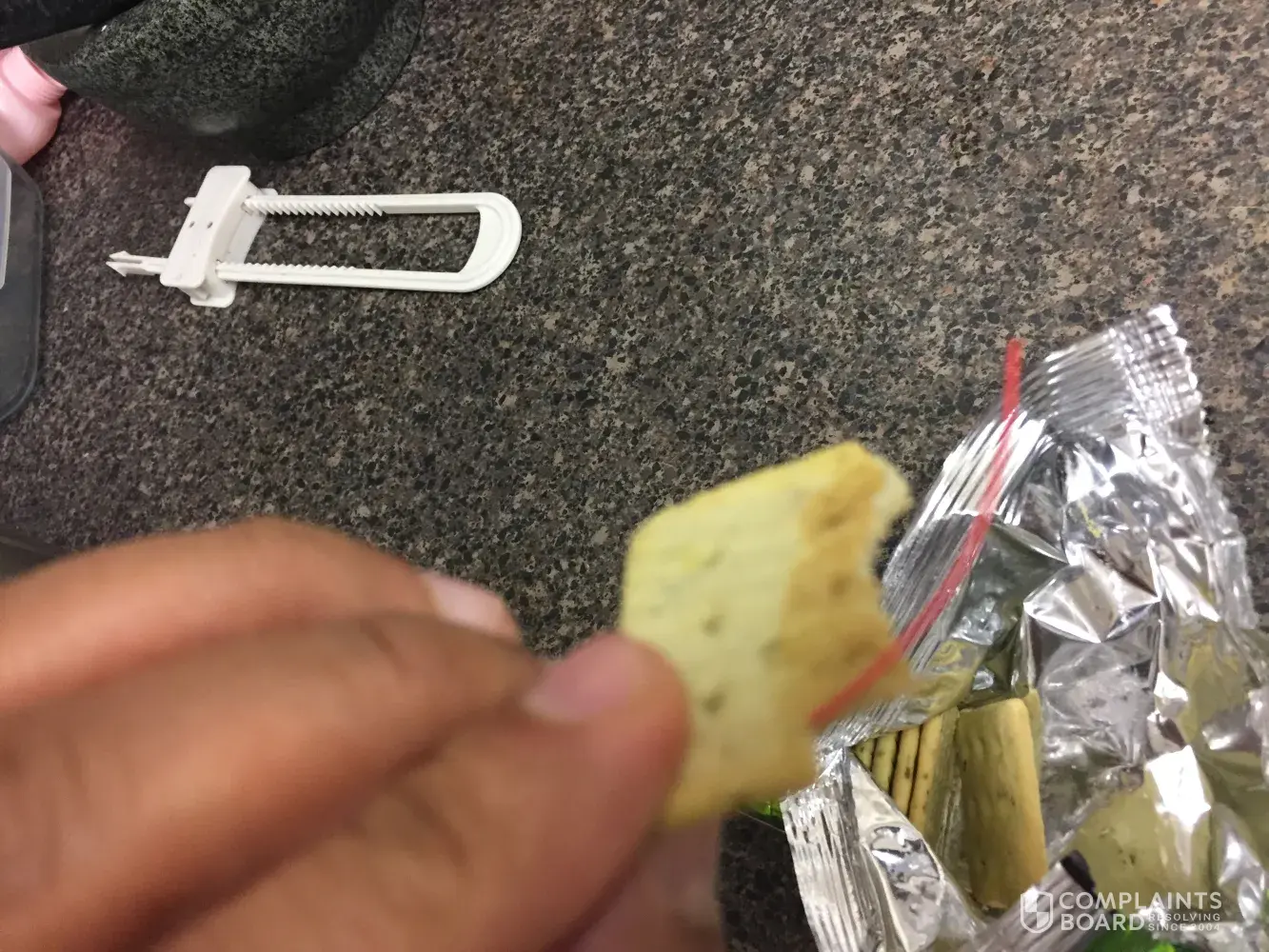 I bought this biscuit from Patel brothers N Attleboro and I found a wire inside it. This was a Brittania 50-50 biscuit that was on the shelf. My wife actually took a bite and then found out about it when she felt the wire on her teeth. Felt really disgusting afterwards. Not at all happy abot the whole experience.