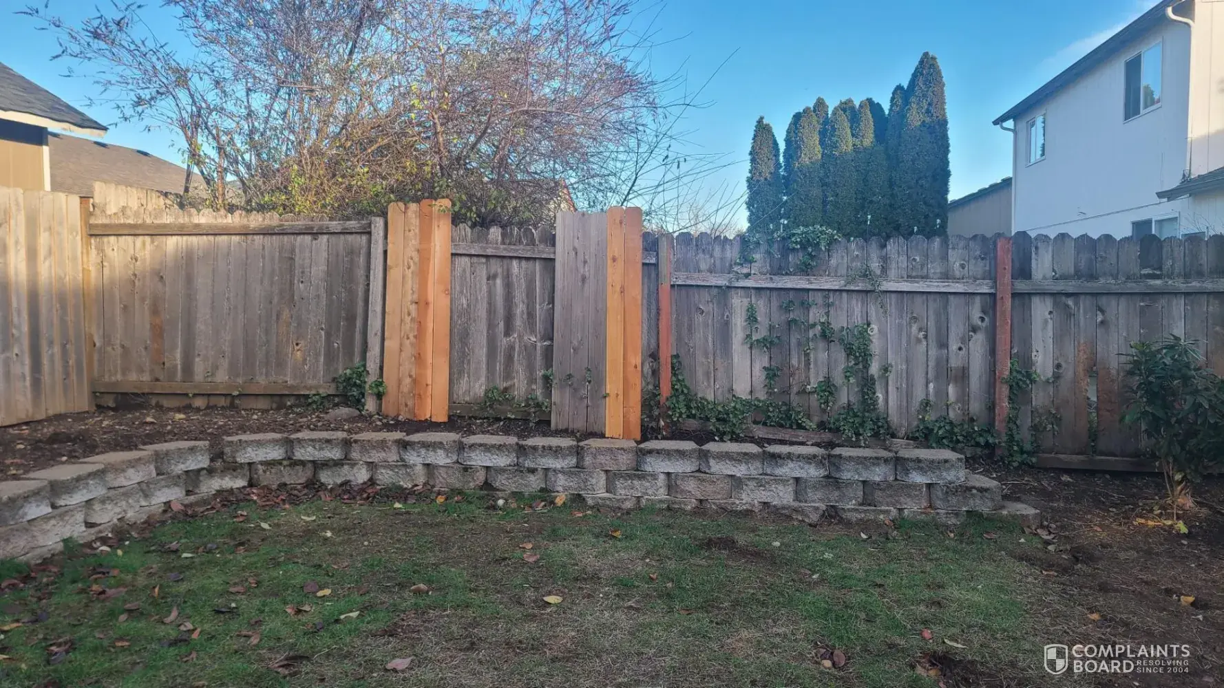 The overgrowth from their yard has caused the fence to rot and the ivy to force the fence post from their frames. We have been maintaining the fence as best as we can. It is to the point where it needs to be replaced because of the damages and continued lack of care by your tenant. The other two sides of our fence are in good shape and not rotted. It is only the side that connects to your tenant. After purchasing multiple supplies to clean up the ivy and repeatedly removing the ivy, it keeps growing back. The branches from the bush in the tenant’s corner pulled the corner of the fence down. We have cut down multiple branches at no avail. The front fence is rotted and falling apart as well. They have multiple broken down vehicles that they leave in the road and then park in front of home owners houses. They have so many people living in the home that it shouldn't be an issue to clean up the property.
