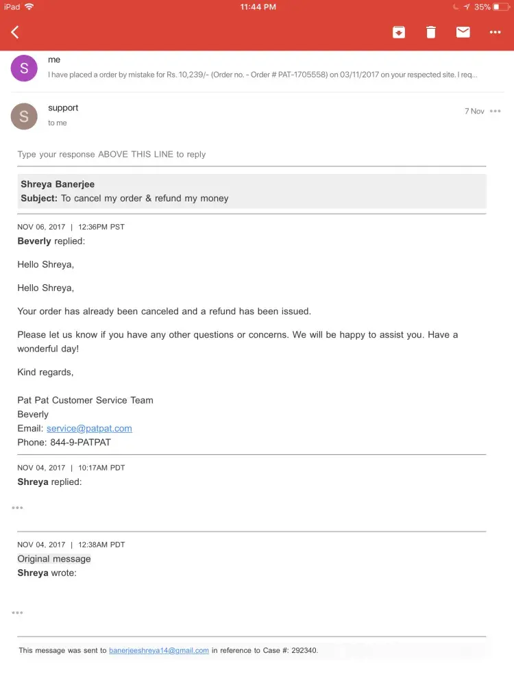 Also i have sent mail to service@patpat.com but not getting any proper answer.