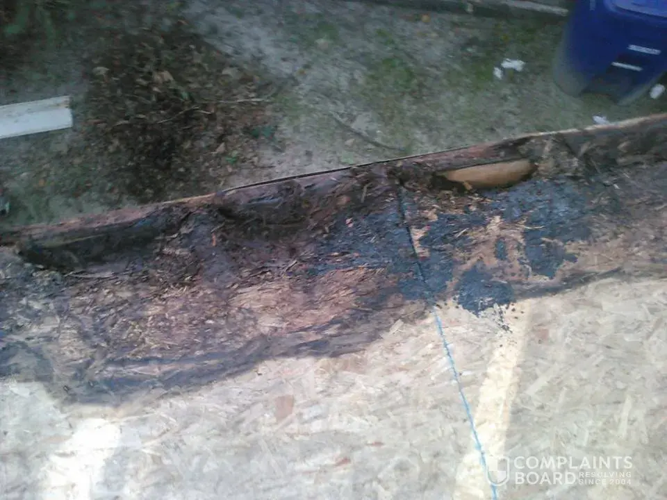 Roof was replaced Feb- 2000 from fire, the wood was replaced with particle board on gabled / flat roof. The original roof was plywood, I know, I built the house. I am in the middle of have the whole roof replace and using plywood. Cost $ 3000.00 I will be seeking in court form this back stabbing company who use substandard material . These people need to be strung up and shown to the whole world that we the bill payers will NOT stand for this crap anymore. My lawyer is sharpening his pencils now.