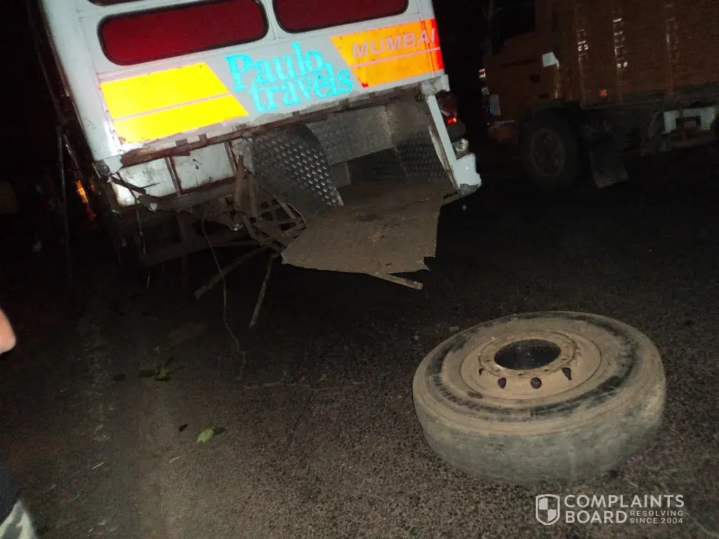 At 3.30a.M. When most of us fast asleep, bus again bumped with axle down, back left tyre separated and bus crawling like a snake dashed to most of the trees. Good luck was there wasn’t a valley otherwise 60 of the passengers, out of which 15-20 foreign tourists, have lost their life. Bang was so severe that lot of people got injured and when they came out just to know that driver have ran away. Paulo travels neither had any alternative arrangement nor thier complaint line was working to report this. Even at 7p.M. When the owner mr. Mario periere was called to report about this incident, he avoided call. He was smsed and mailed about this incident but no reply from him. Forget about compensating passengers for their trip, thier travel agency is not even taking calls. Signs of a leader in travel & transport to goa. Paulo travels, though this is not happening for 1st time becuase earlier twice our group faced with tyre puncture or drunken driver case, third time we took paulo because this time neeta bus was completely booked and we have least option to choose then paulo.