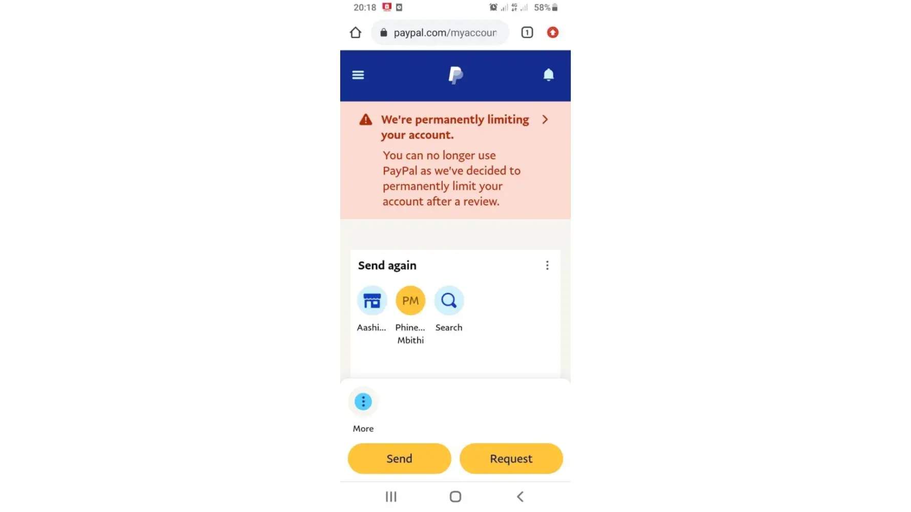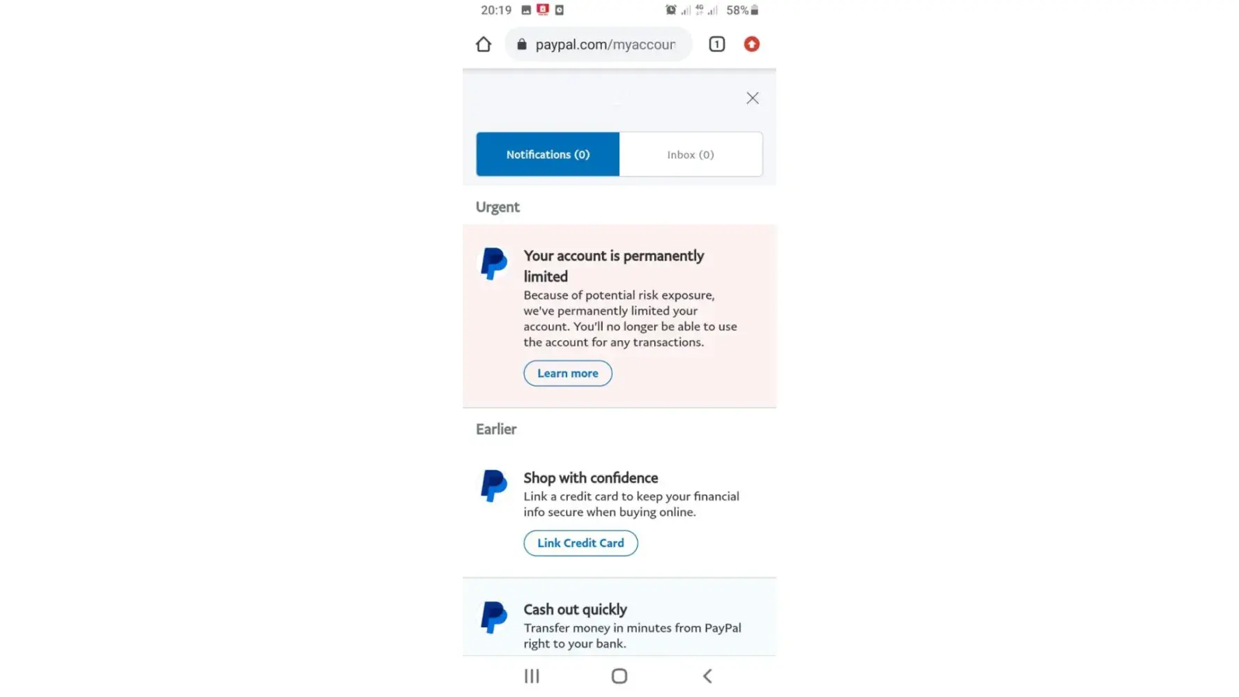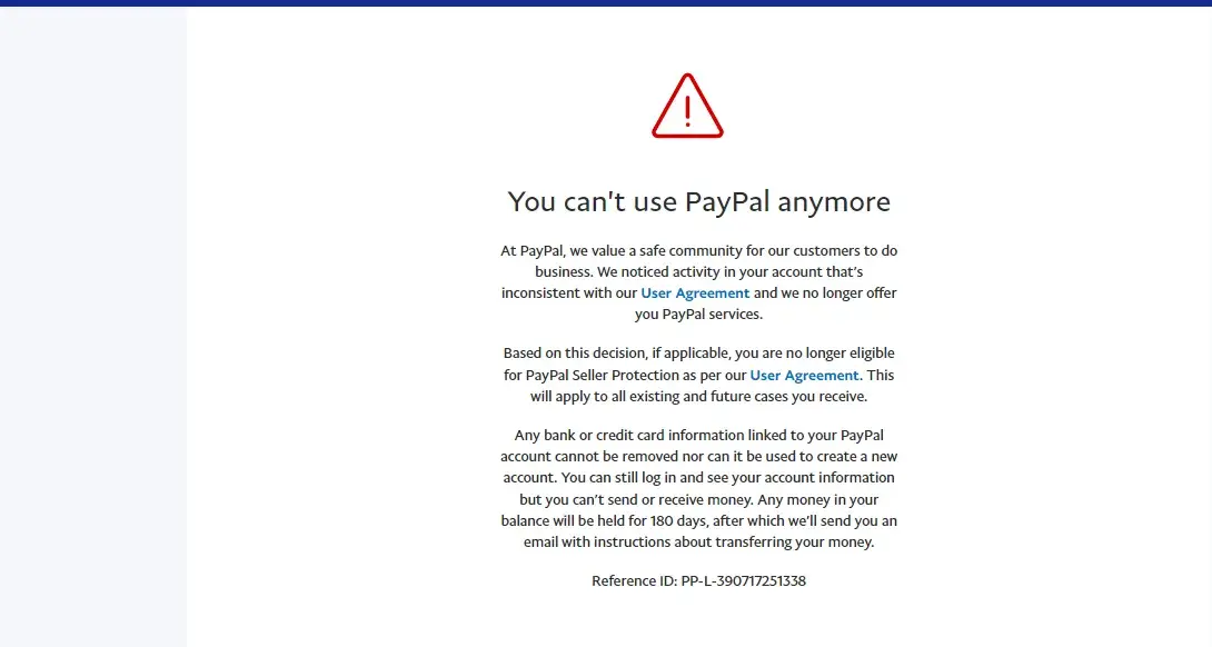 I received an email from them that my account has been permanently limited without prior warning. I have been locked out of PayPal just like that.