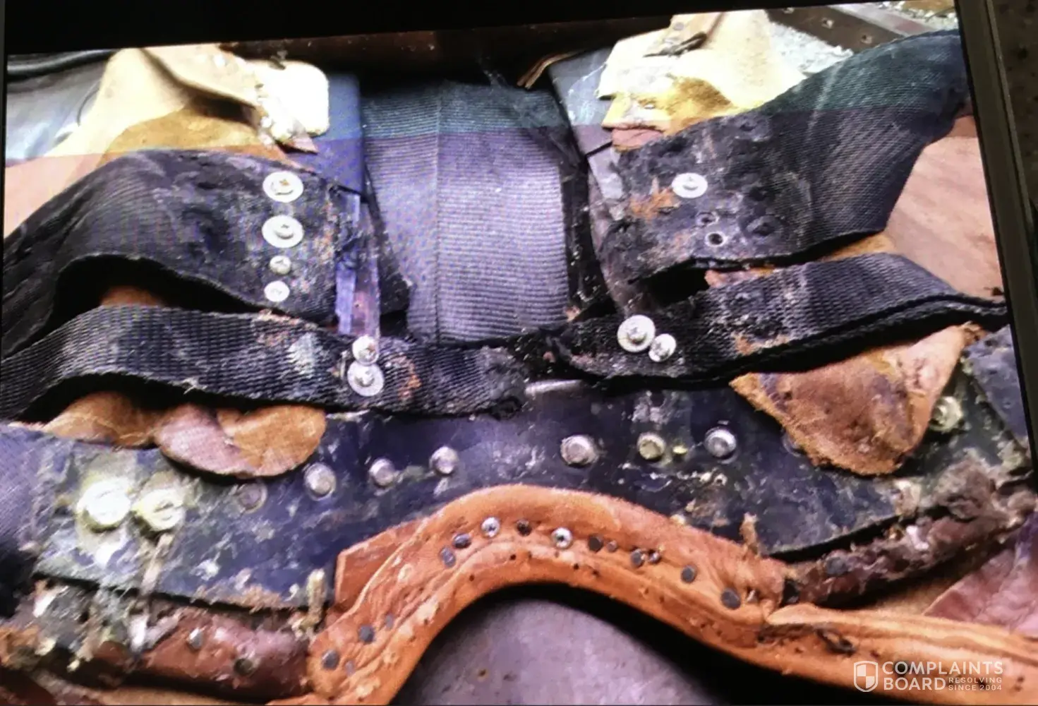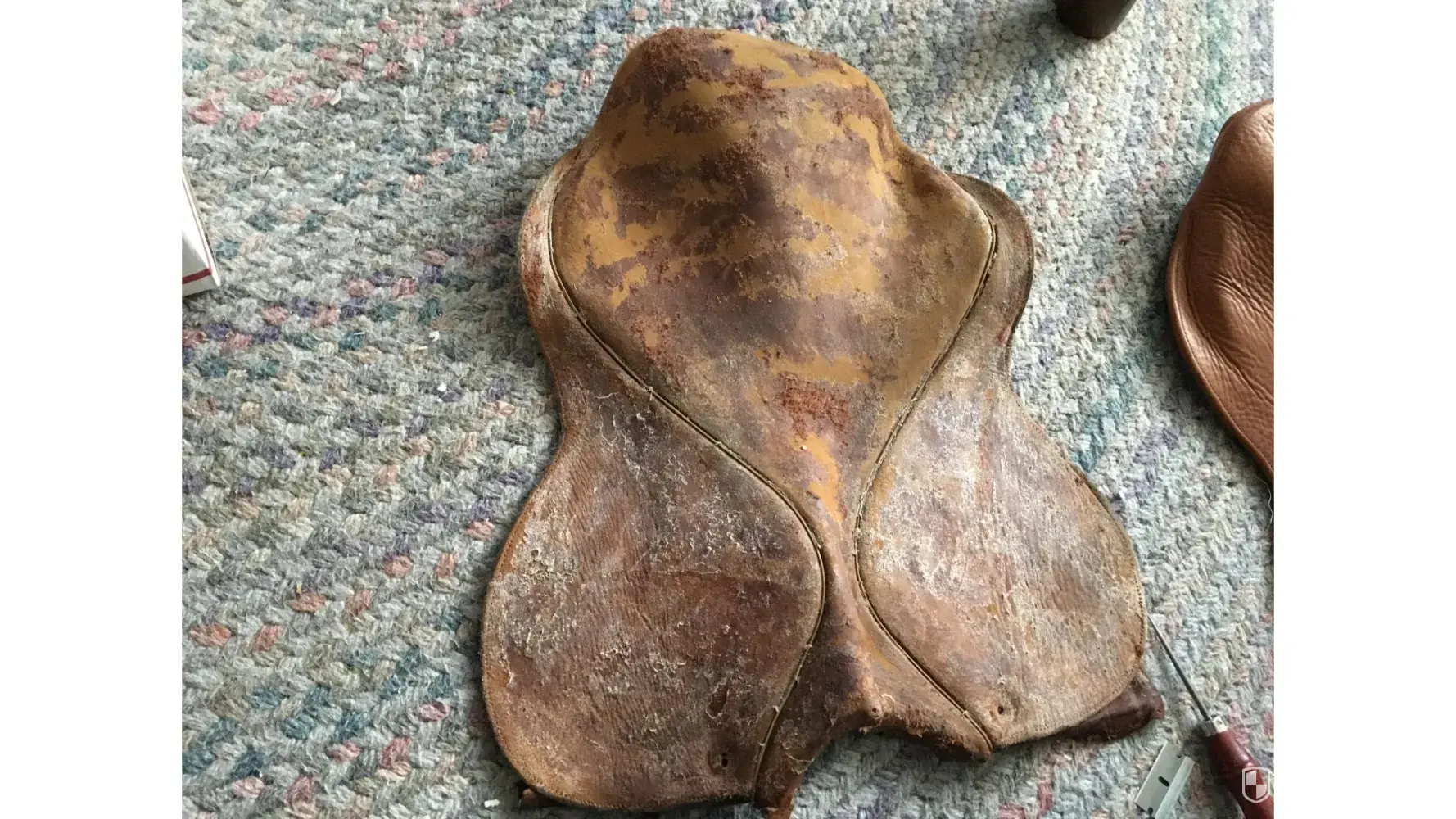 Photos of my ruined saddles attached. The screws and bolts are not what I contracted the merchant to do to my saddles. The original seat in the photo has been ruined. The merchant glued his leather to my old leather instead of building a new seat on both saddles. I could not even put the old leather back on the saddles because of this. The saddle with the bolts in the photo is ruined since that area is riveted when building a saddle, not put together with bolts and double stacked nuts.