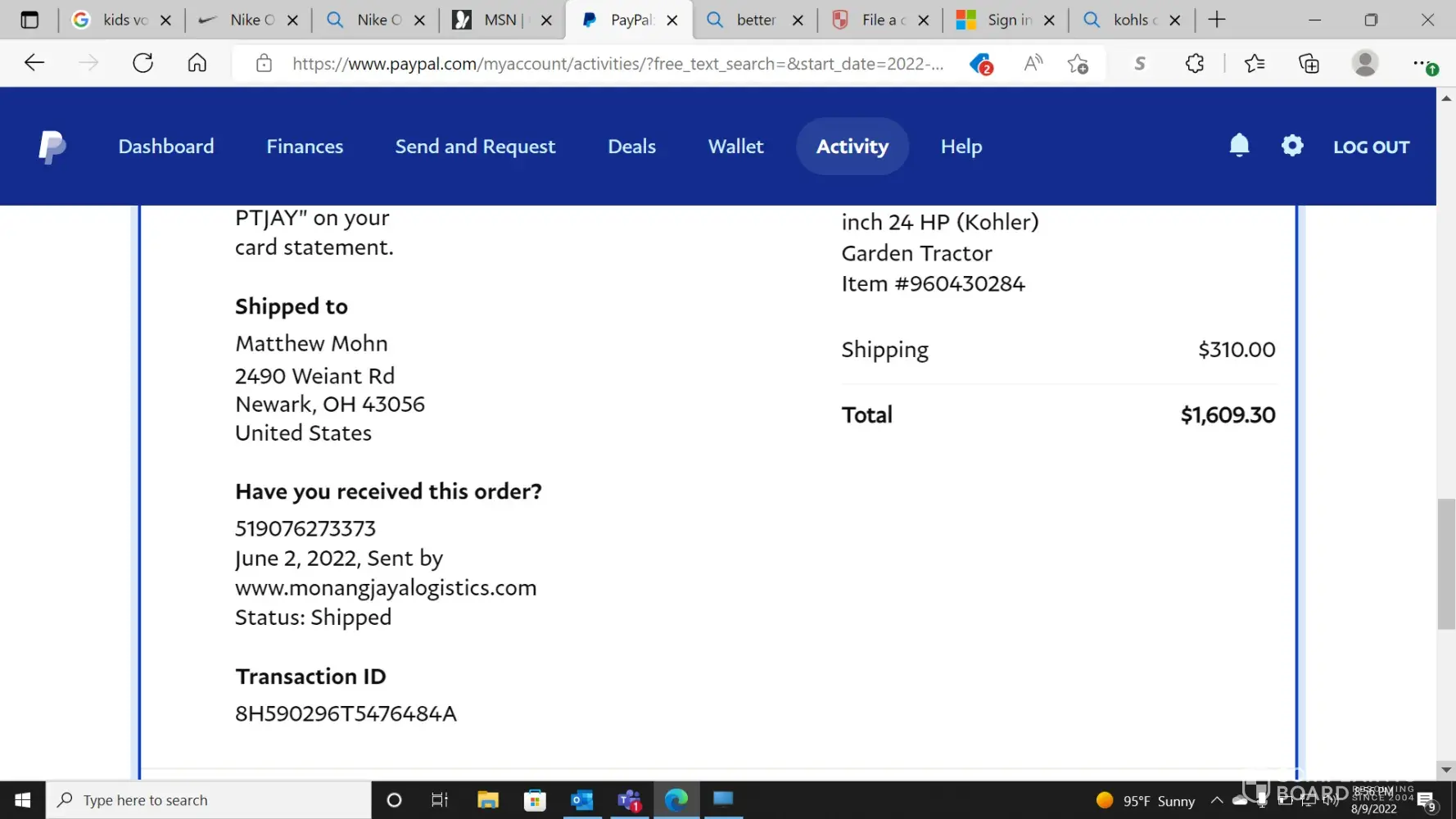 Transaction ID154570268K318980W 08/25/2022 - Paypal Philippines account