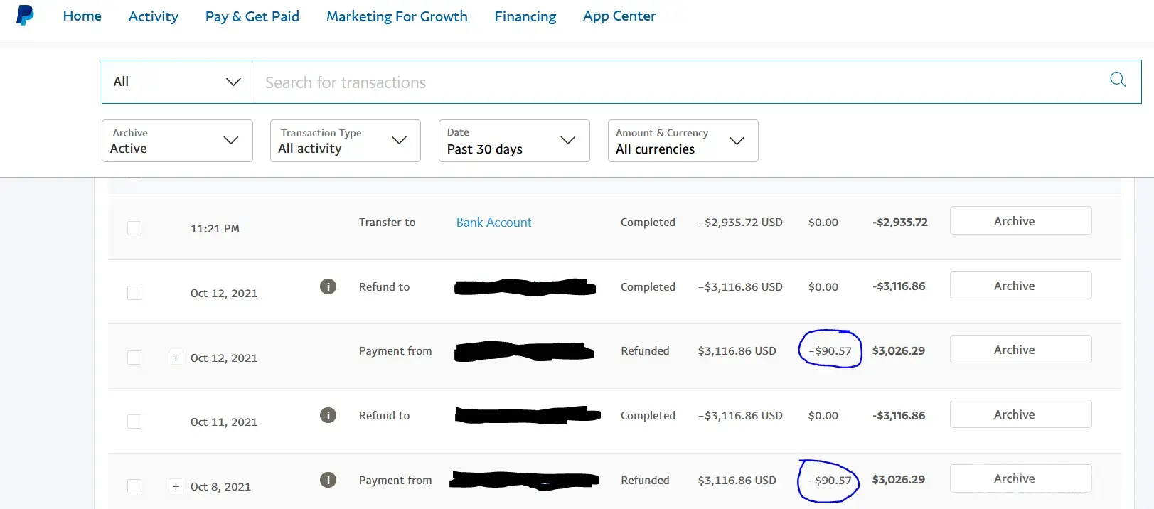 On 10/8/2021 a friend sent me money as they had many times in the past. Paypal newly assessed and removed a $90.57 fee whereas they had never done so before. I refunded the money but PayPal kept the fee. I contacted my friend to resend and they did on 10/11/2021 and were not given the option to send any differently. Again Paypal assessed a second $90.57 fee. I again refunded the transfer to my friend. Over several days and several hours and chat messages and phone calls and getting hung up on and waiting in queue, Paypal blatantly refuses to refund or acknowledge a possible error saying that it is their profit based on the 2019 policy. This is all recorded in the Paypal message center. One Paypal manager, Brad, claiming to be in Florida even said that he didn't work for anyone higher and couldnt refer me to a supervisor and there was no conflict resolution process or team at Paypal so I was basically out of luck.