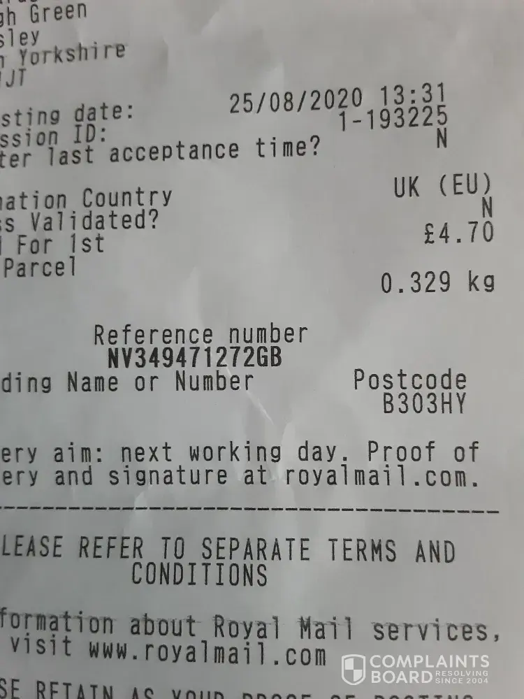 Mrs P A Beaumont reciept for goods returned paid with Paypal Who have filed a dispute
