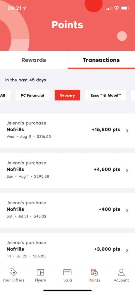 Hello, my name is Roger Cabezas. I live at 104 Six Point Rd in Etobicoke Ontario. I am writing today to inform you of my negative experience with your points system. On August 11th, 2021 I purchased some groceries at No Frills at 1020 Islington Avenue. The amount spent was $317 and I was awarded 3, 170 points for that transaction. However I have a WORLD...