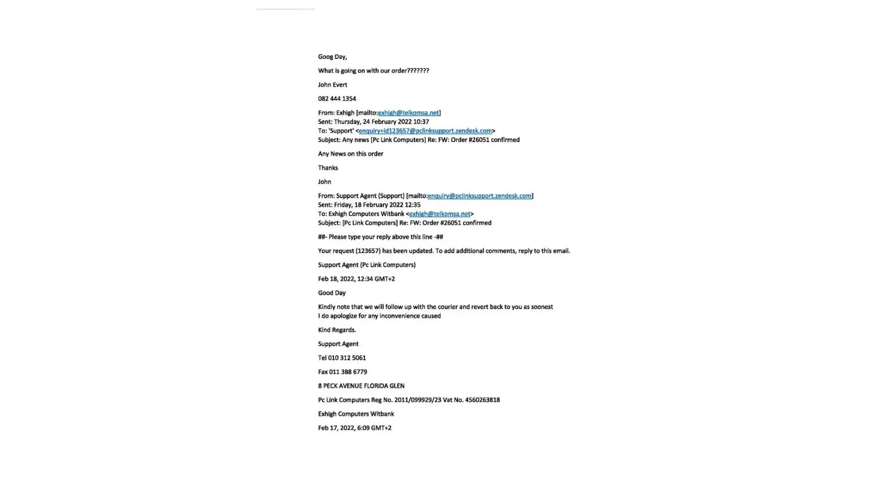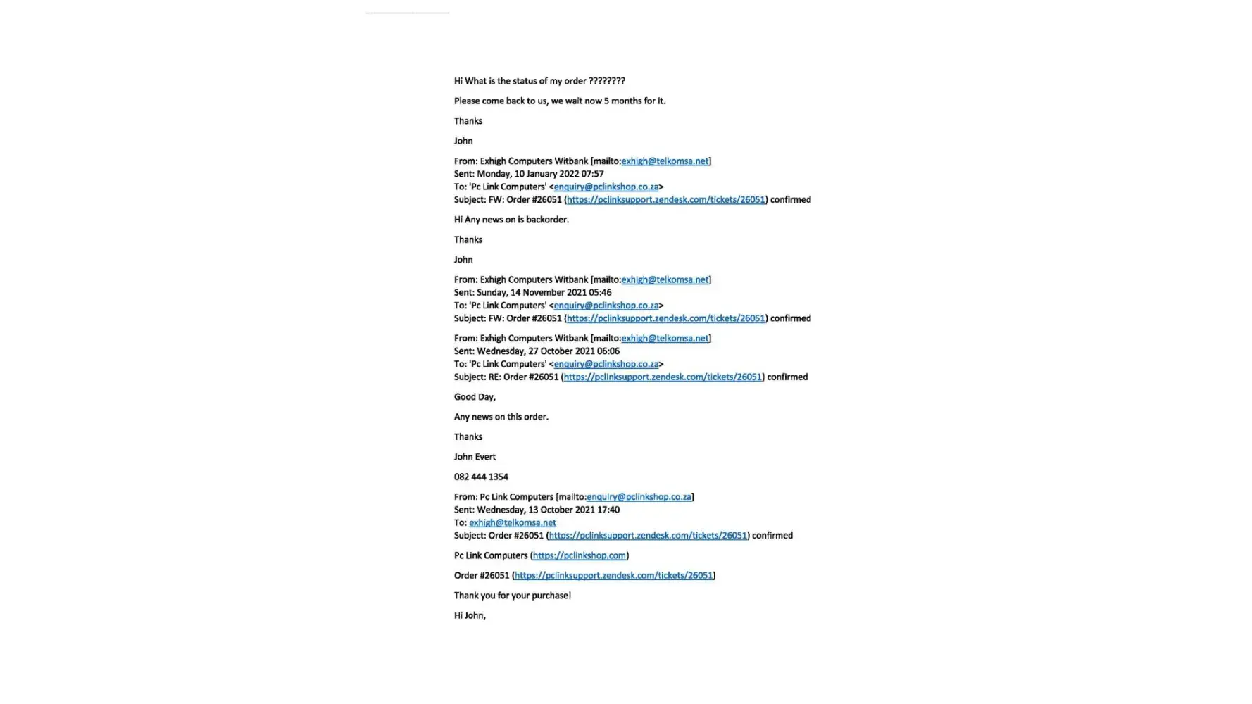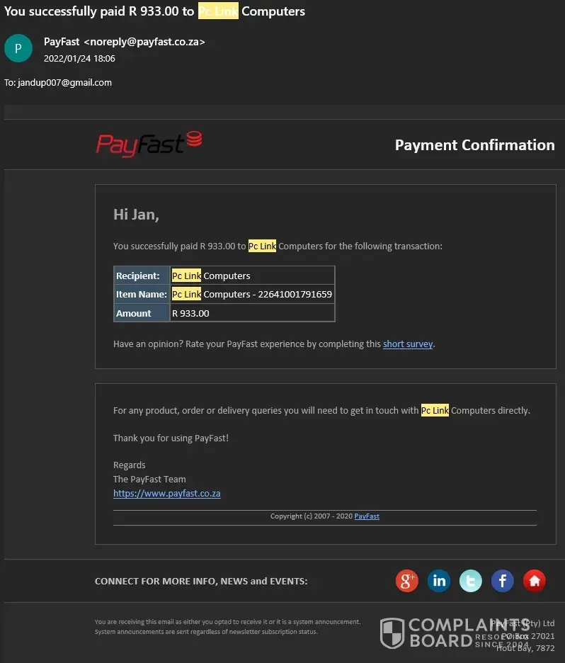 We have tried to email them on [protected]@pclinkshop.co.za / [protected]@pclinkshop.co.za as well as [protected]@pclinkshop.co.za