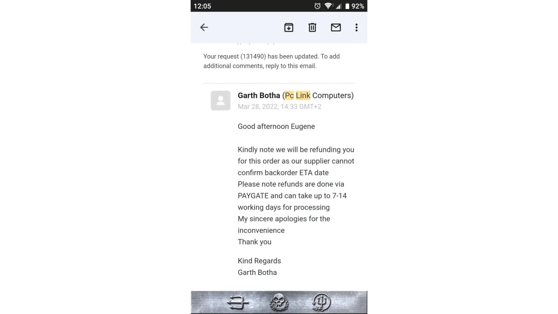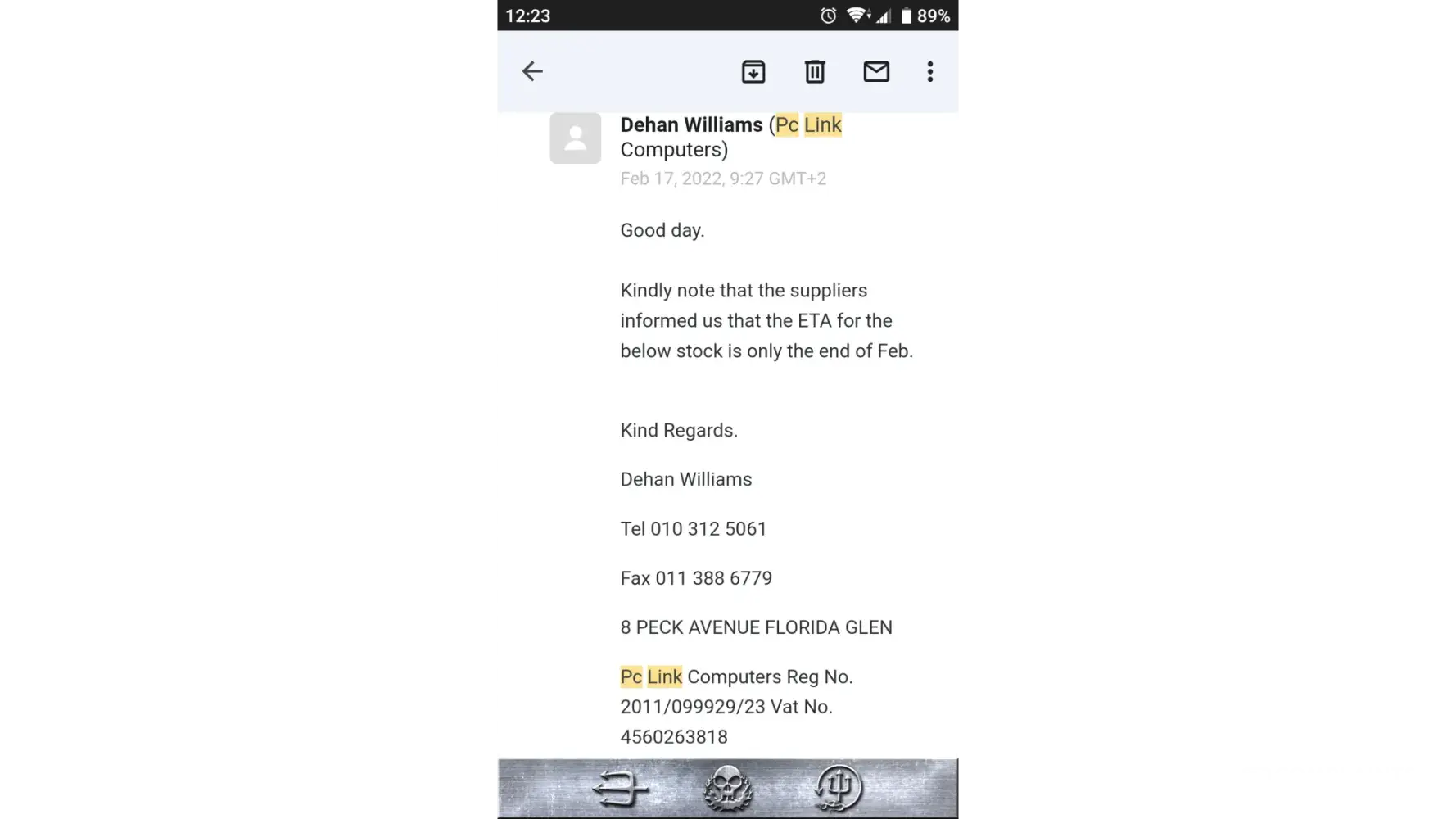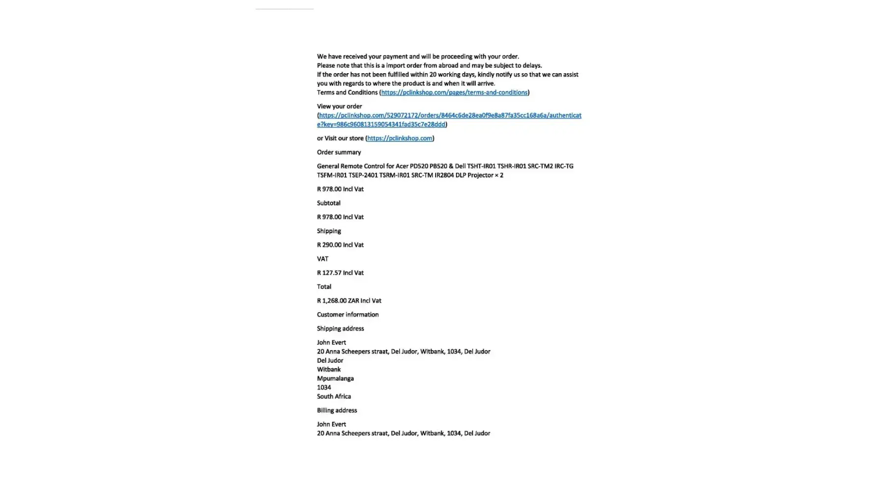 We have tried to email them on [protected]@pclinkshop.co.za / [protected]@pclinkshop.co.za as well as [protected]@pclinkshop.co.za