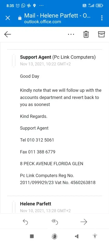 I have used pc link for just under a year now, spent about R50K in the last 4 months with them, my first incident was when a item I ordered was out of stock, I had no way to call them no replies on my emails upon email eventually a month later I received my package.