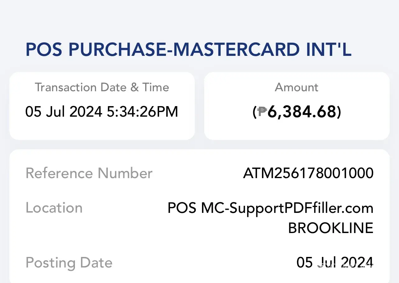 Last July 5,2024 I found out that my account has been charged of 6,384php equivalent of more than $100. I never used your app pdffiller Brookline and I never give any authorization on my account and I never purchase anything. Please give it back to me, it’s a hard earn money and I want it back.