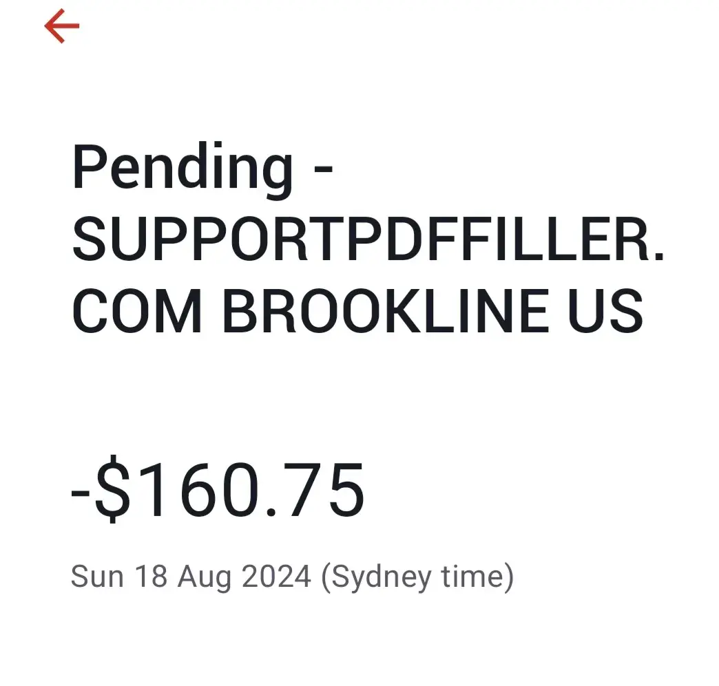 I woke up today with a pending charge of $102.34 from supportpdffiller, and upon further inspection have been charged this amount for the past 2 years! I vaguely recall being charged last year and chalking it up to me forgetting that the free trial ran out. I deleted my account and just let it slide. Taking this into consideration, there is no excuse as to why I was charged this year. I am a broke college student now and can't just let these things slide anymore. I would like to request a refund of all three charges, as I never used any of PDF fillers' services to the point of a yearly charge. I see they have a good track record of resolving these issues, and appreciate their cooperation in working with their customers.