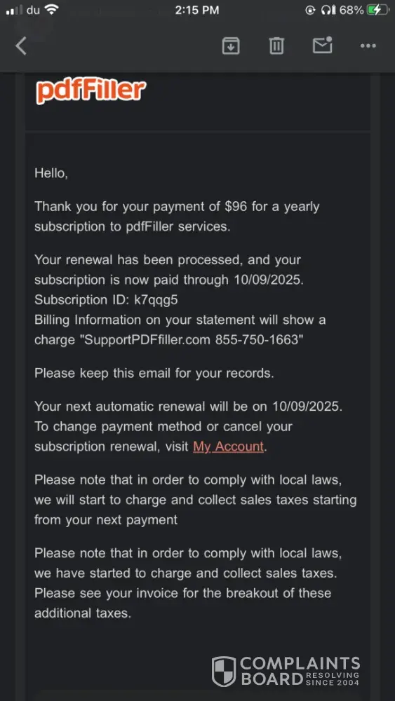 PDF filler are croocks. I just received a notification that they took an unauthorized $2 from my account even though I deleted my account the very day I subscribed. What is wrong with this company?