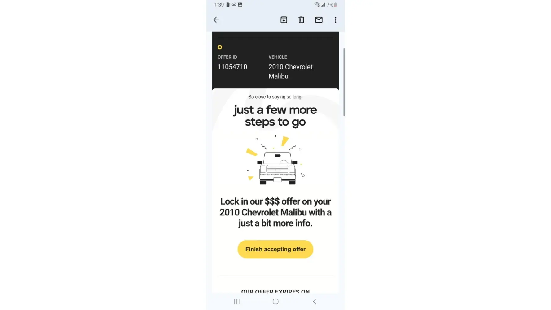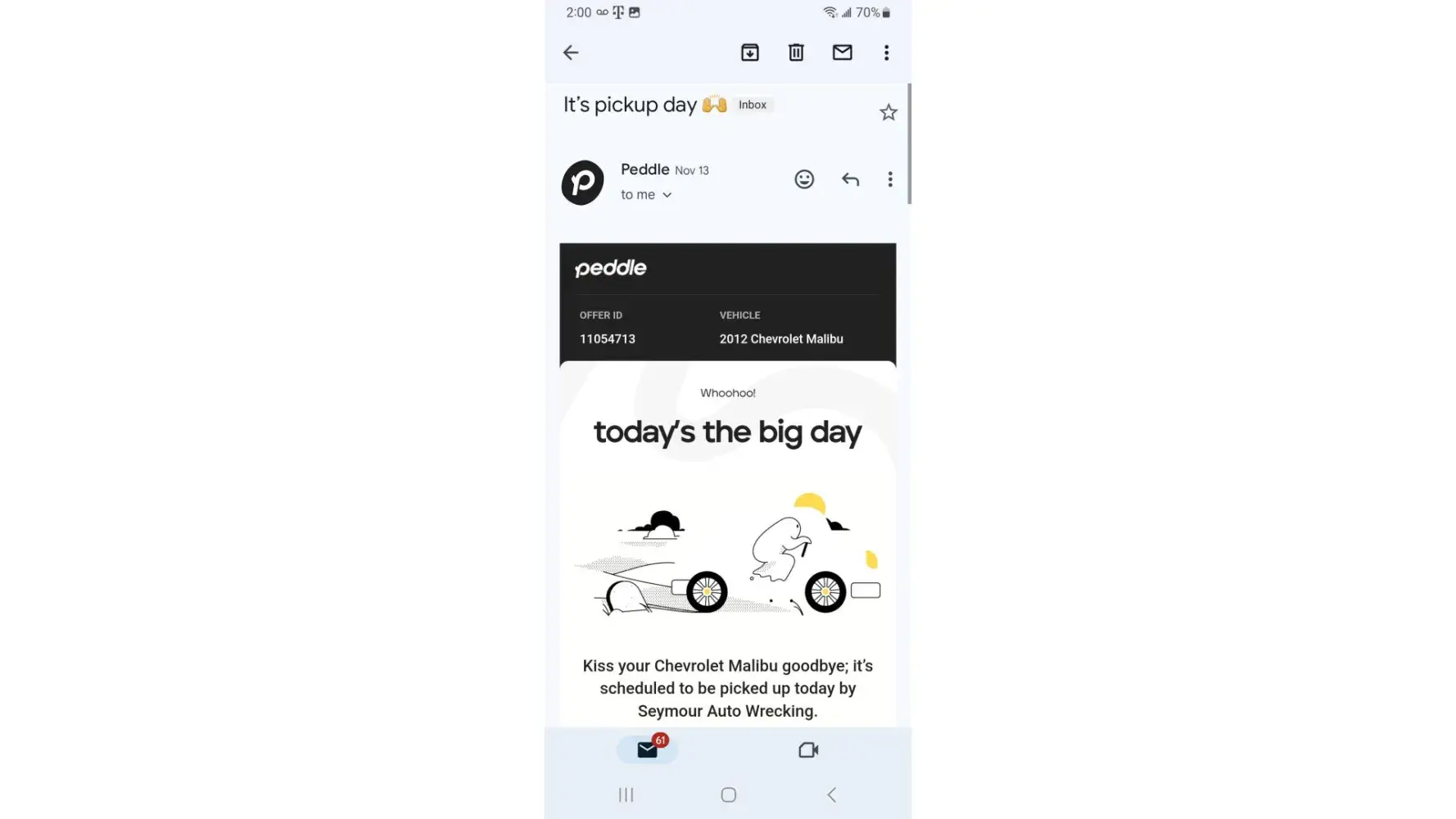 I sold peddle my car 2012 Cheverly Malibu for 410 however they reschedule and had me to meet them with papers and were to govevme 410 cash howexer o recieved a check trusting them to be offuxle honedt business folks I took chevk and legt un a rufh going through a hard tome and death w the reason fir me to srll car who bad originslal everything wheteas I ciuld havr sold the doors and made over 280 u am upset and they are nit beuvg redoectful honestvbysibess folks I drmand ny funds with a increase a total of 500 plus ian aplogy e slluppose to give me 410 in cash however they gave me a check for 280 I did not release it until I Cash the check which was supposed to be cash I m really upset I trusted them I want my money today shsntsi rigers