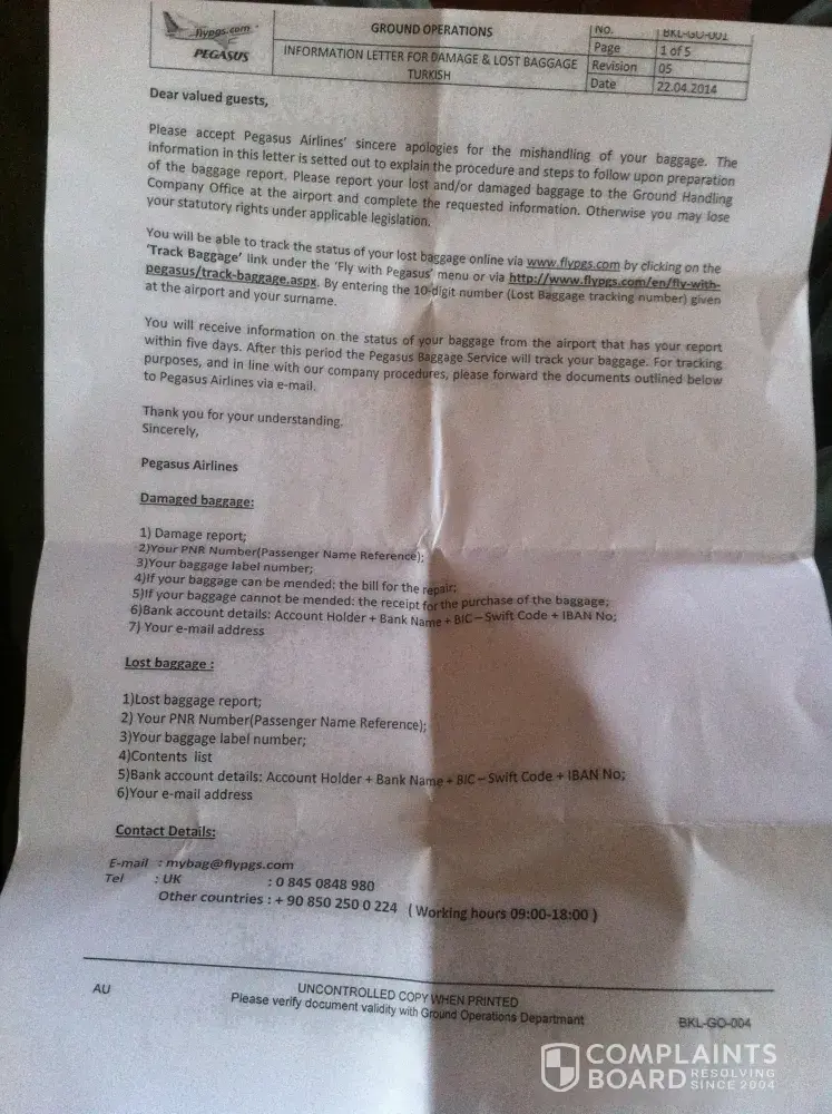 Still waiting for Pegasus to respond to a complaint my husband made 2 weeks ago. He flew from Izmir-Istanbul-Stansted but his luggage never left Istanbul! Waited 3 hours at Stansted, noone to help and had to drive 2.5 hours home with no clues and certainly no luggage! Called every tel no. under the sun the following day (PGS Istanbul head Office, PGS...