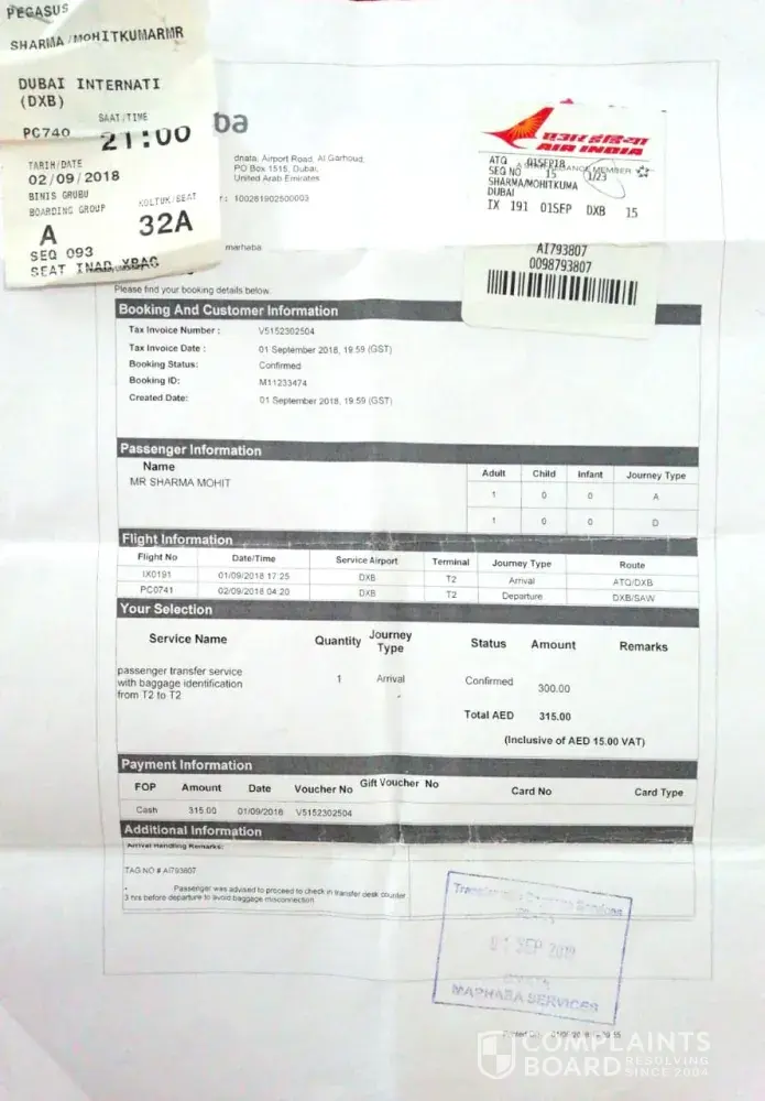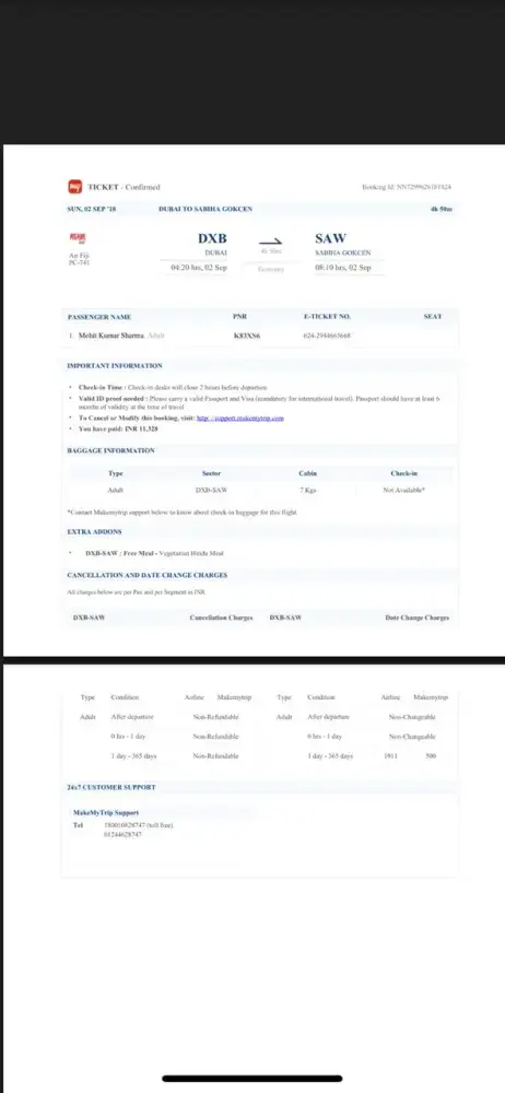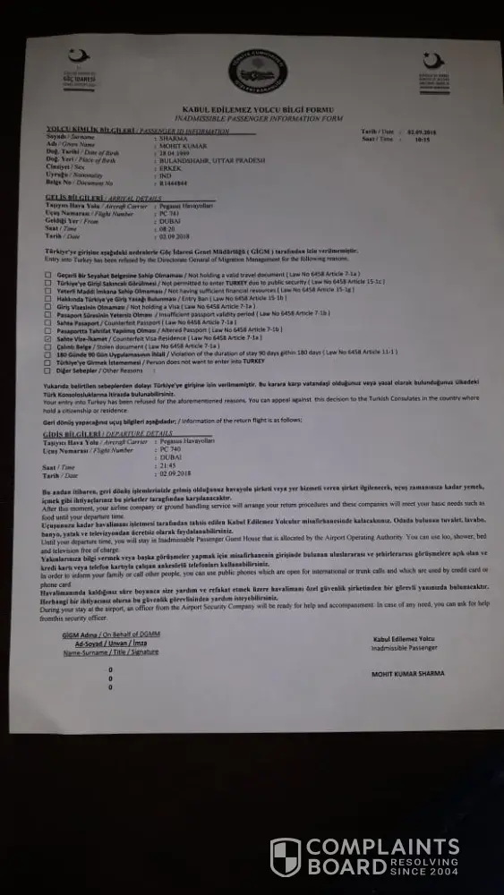 I am Mohit Kumar Sharma from India had travelled from Turkey to Dubai as deportee on 2nd of Sep 2018 at 21:00 by Pegasus Airlines.