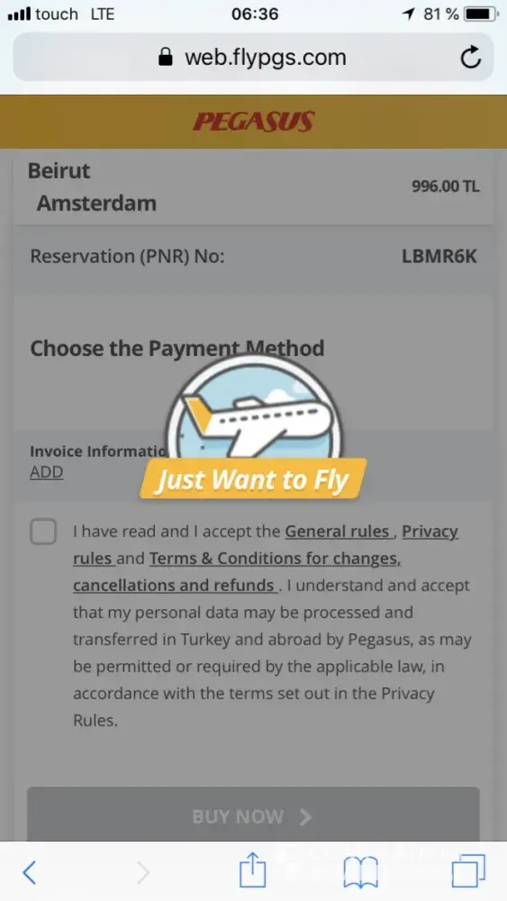 Pegasus Airlines debited amount without booking a ticket