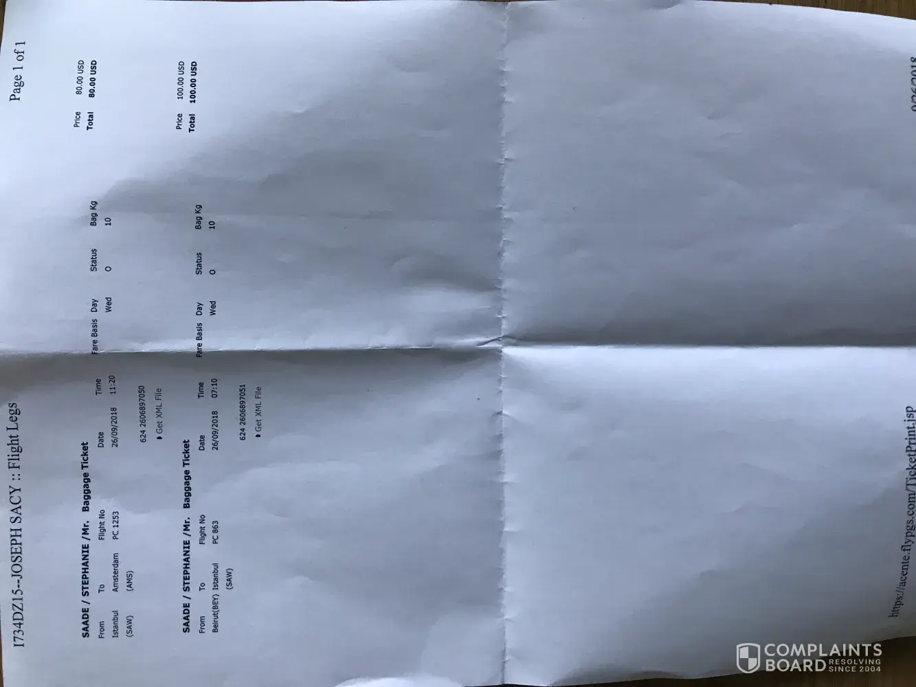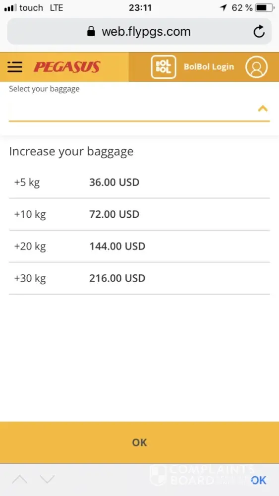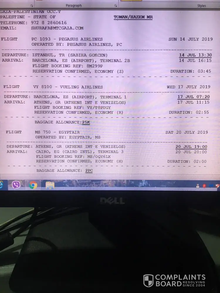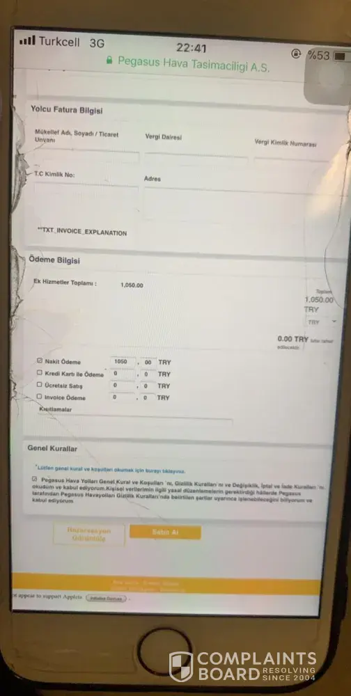 Pegasus Airlines complaint