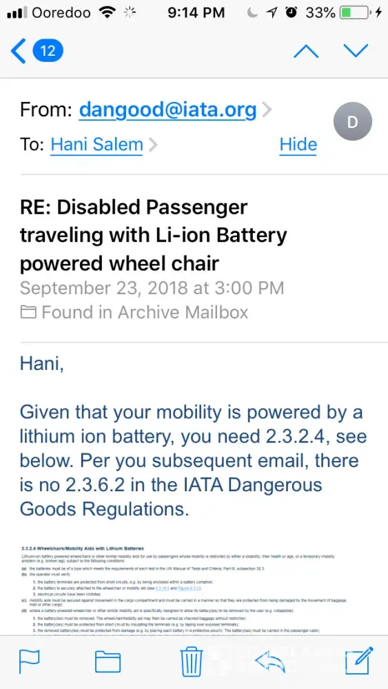 Pegasus Airlines not allowing my battery wheel chair